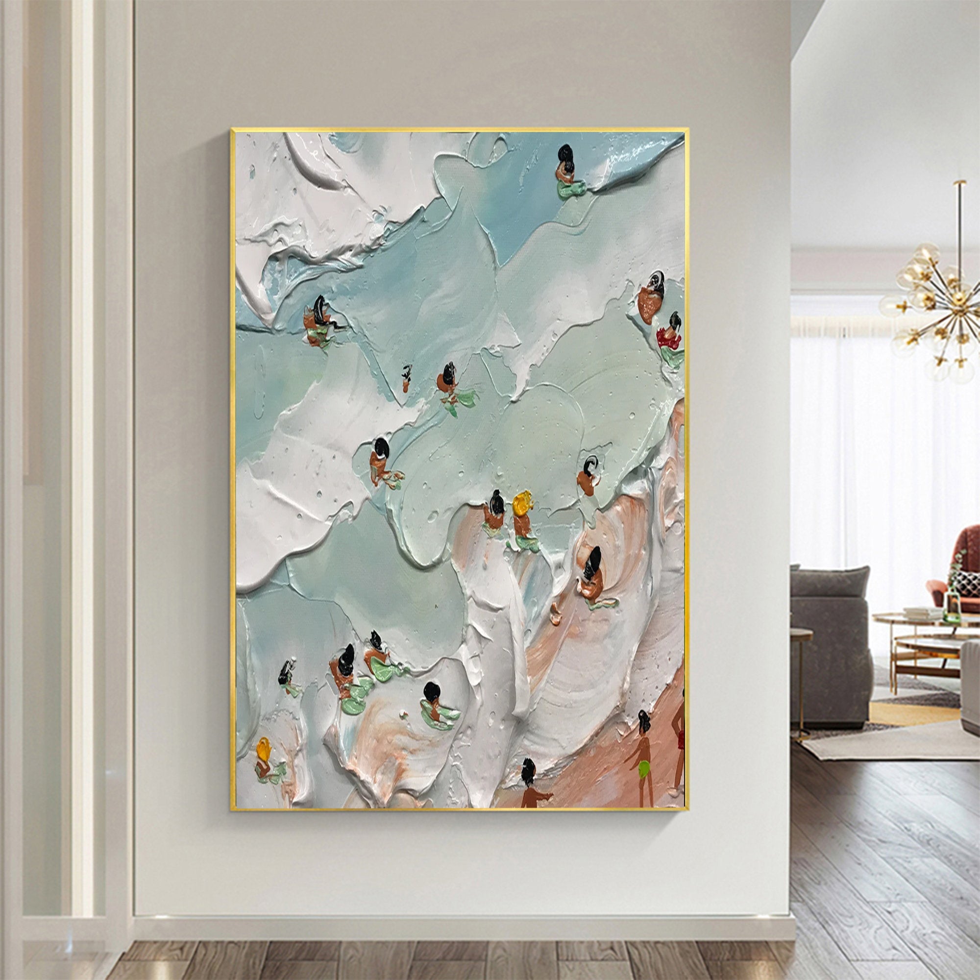 Beach Textured Wall Art with Swimmers for Modern Coastal Interiors #SG212