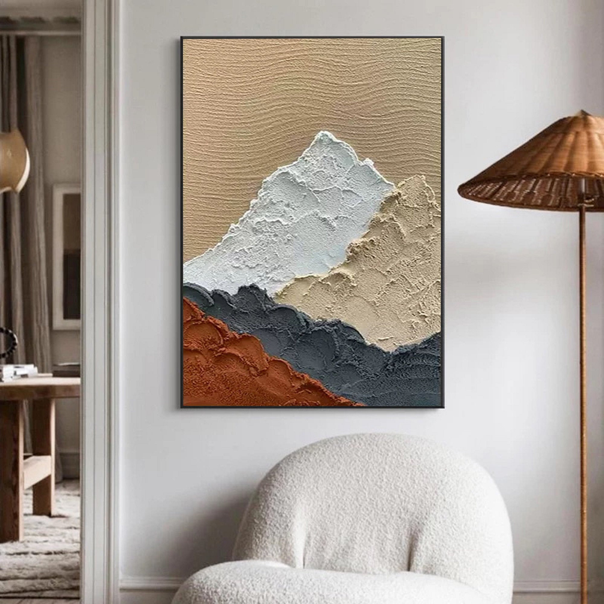 This abstract textured wall art features intricate surface texture that creates a captivating focal point for your home decor. The painting's deep, layered finish captures the essence of abstract expressionism, adding depth and complexity to any room. The textured artwork draws attention with its bold and tactile design, making it an ideal piece for modern wall decor for living room or a striking addition to your artwork gallery.