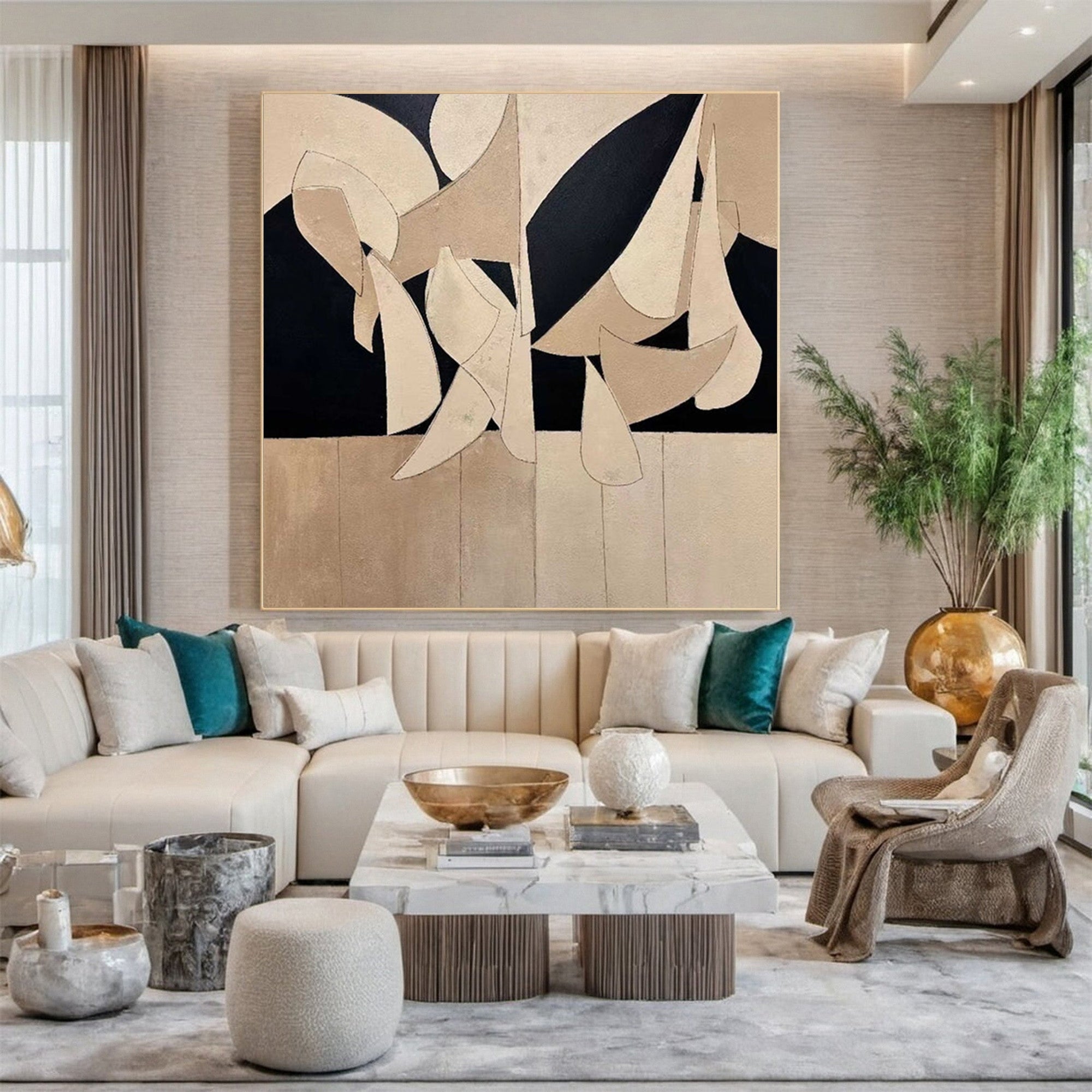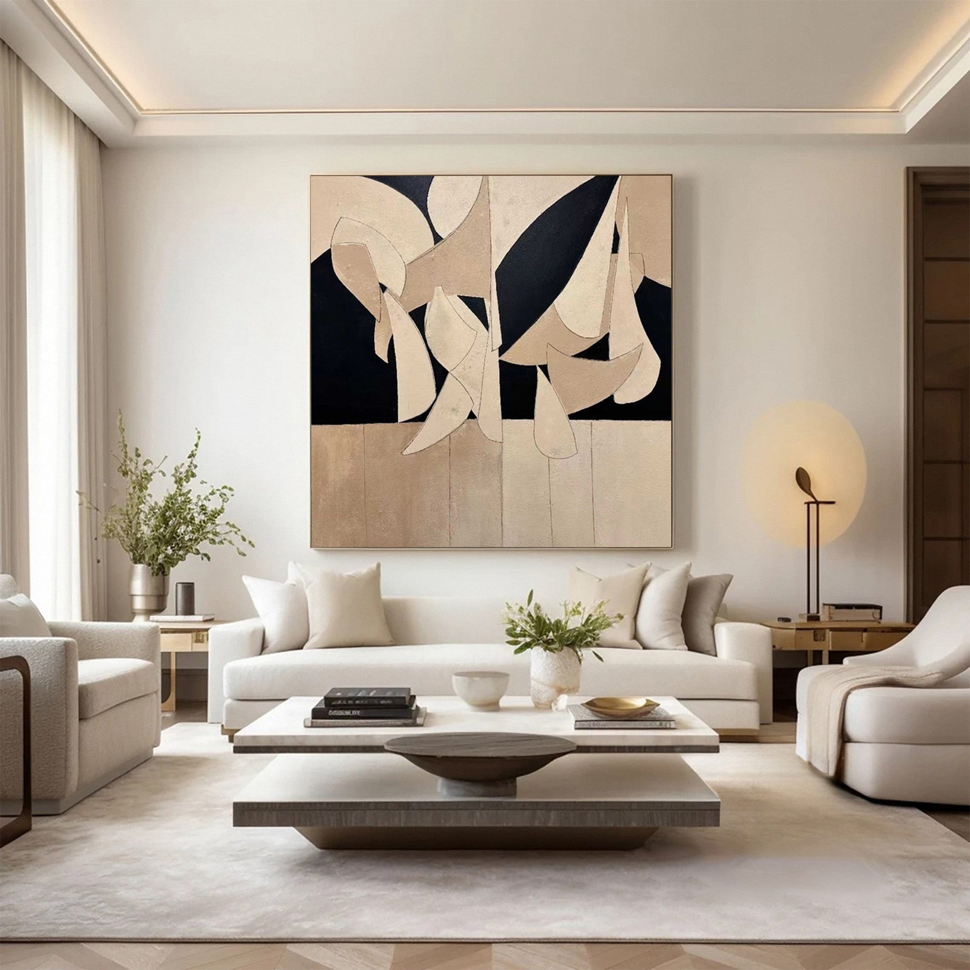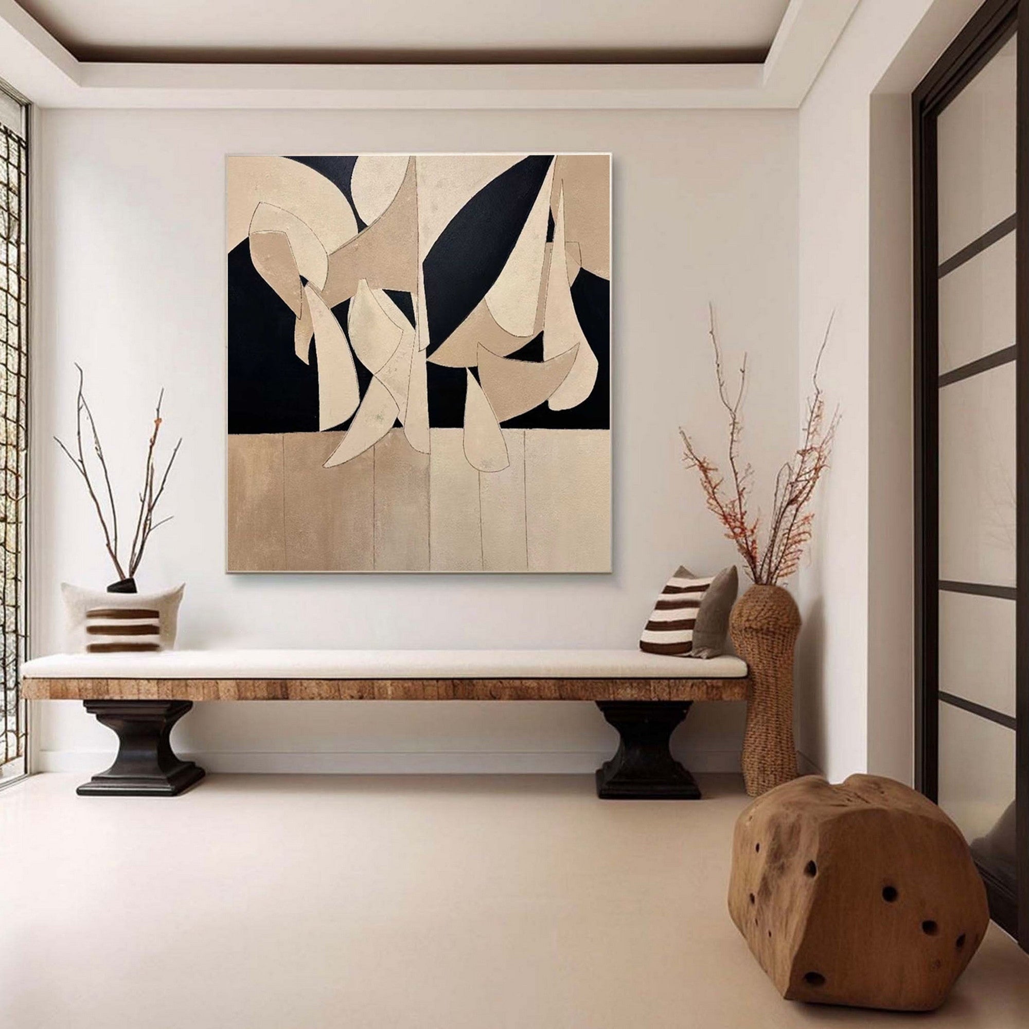 Wabi Sabi Wall Art Abstract Beige and Black Design for Contemporary Living Room or Bedroom#TX234