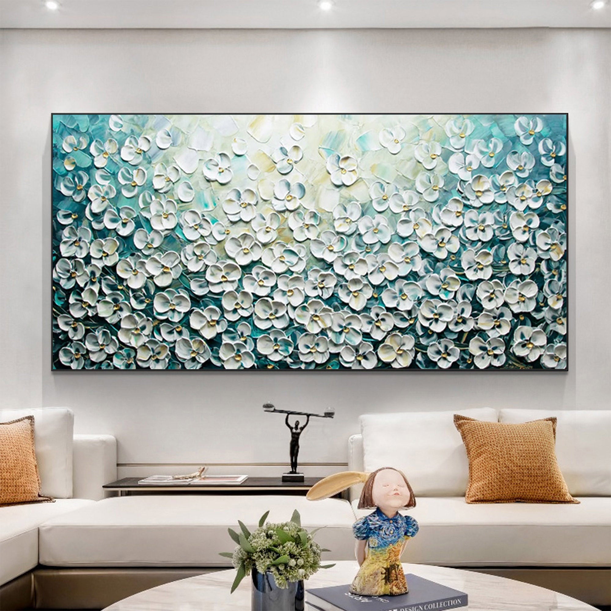Colorful Textured Floral Painting for Home Interior Decor #CA011
