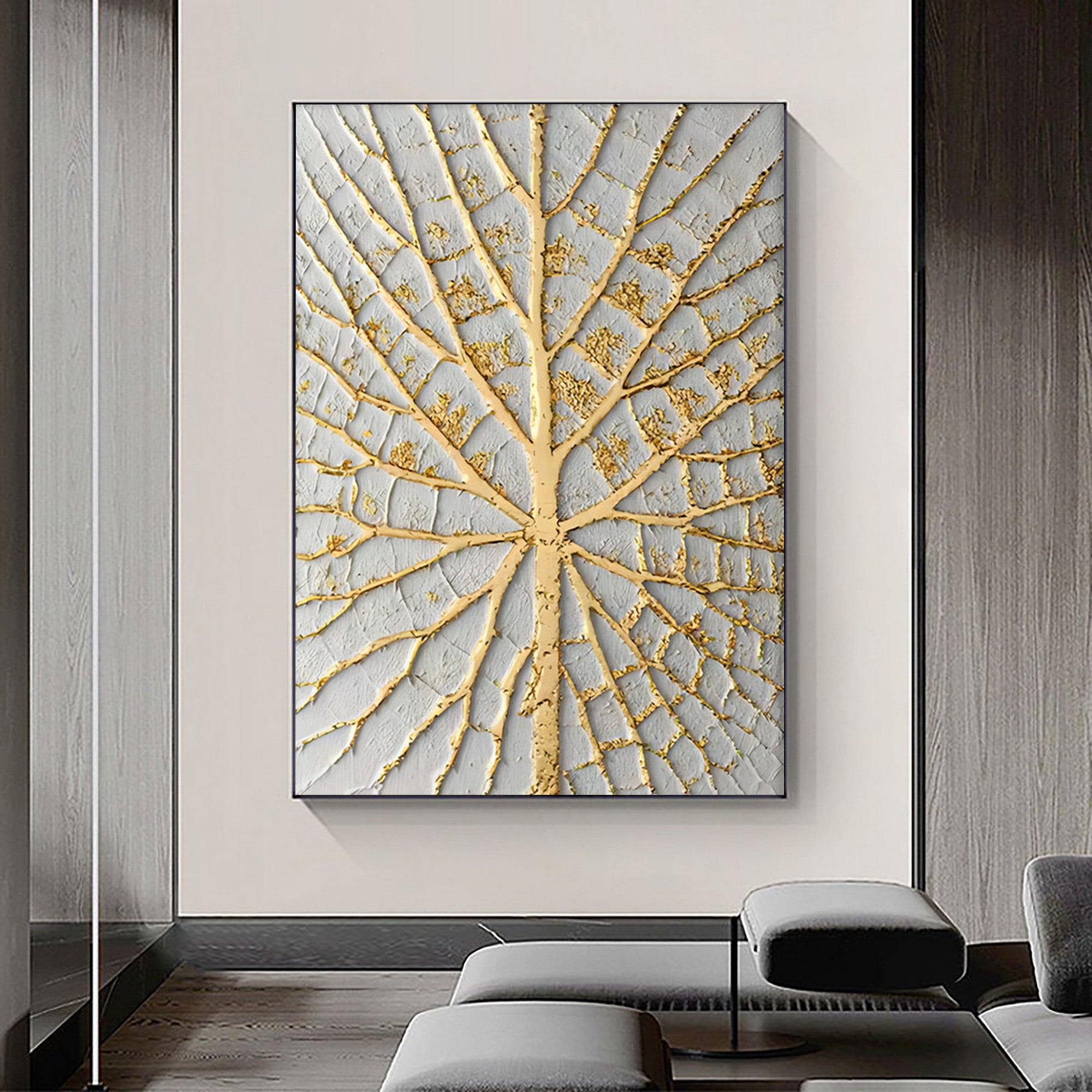 Abstract Metal Wall Art with Gold Tree and Leaf Patterns for Modern Interiors #SP012