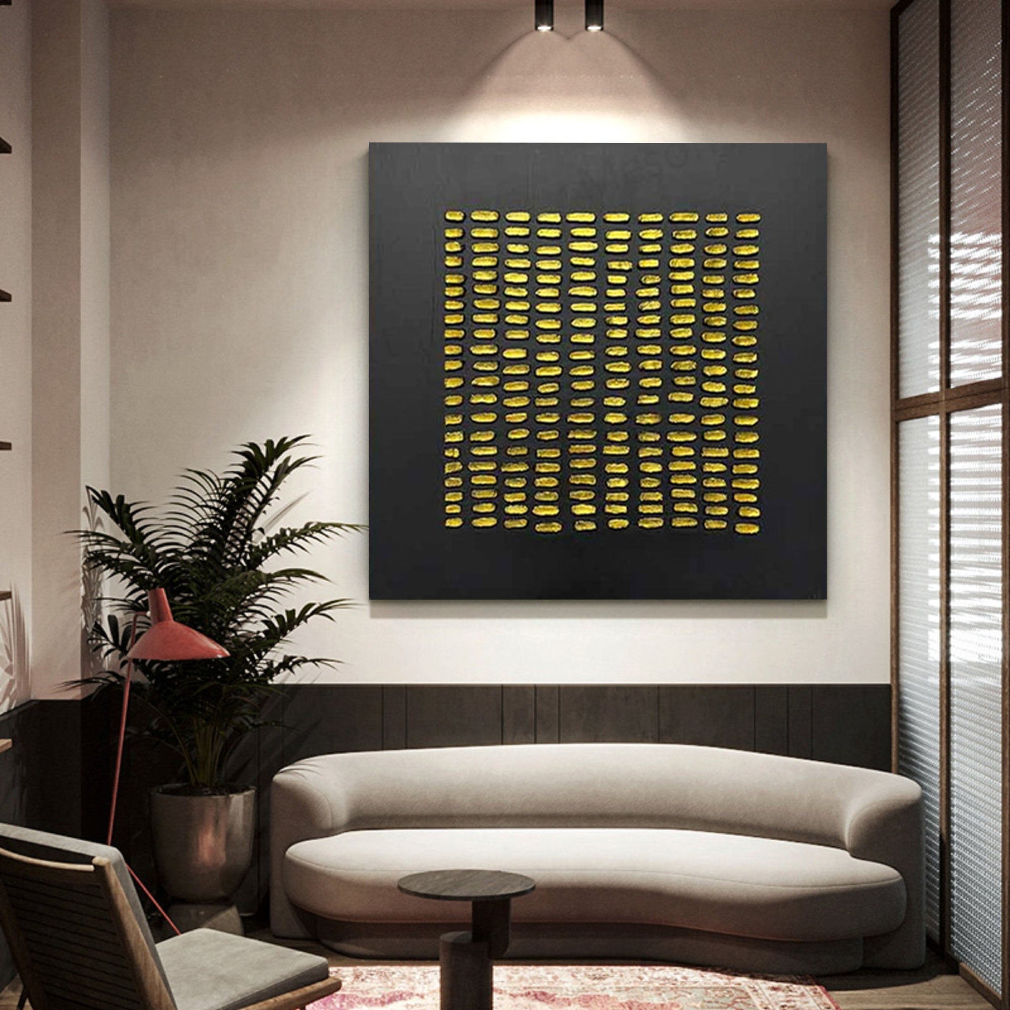 Minimalist Gold and Black Abstract Wall Art for Contemporary Interiors #SP019