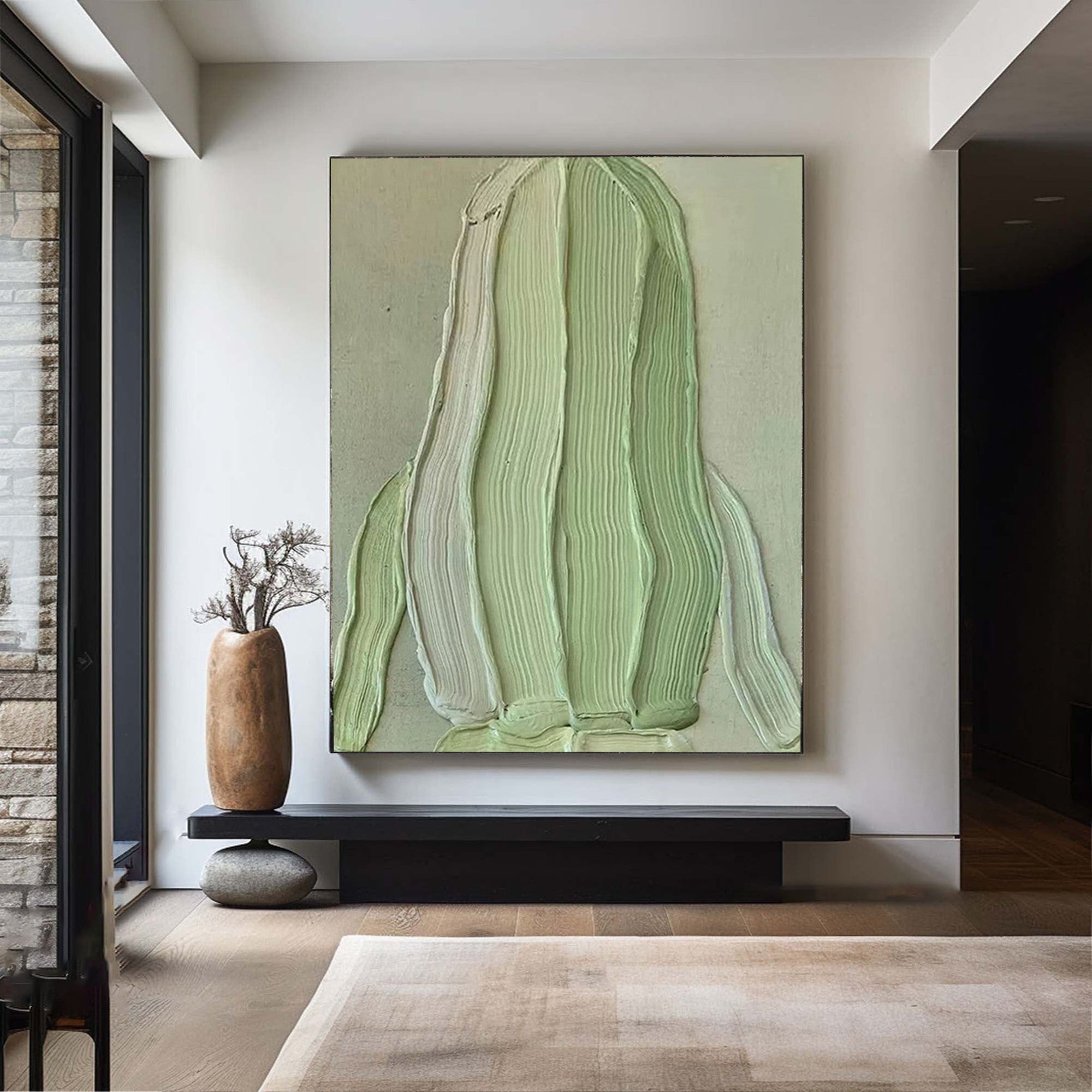 Green Abstract Portrait Textured Wall Art for Modern Minimalist Interiors #SG176