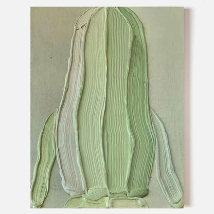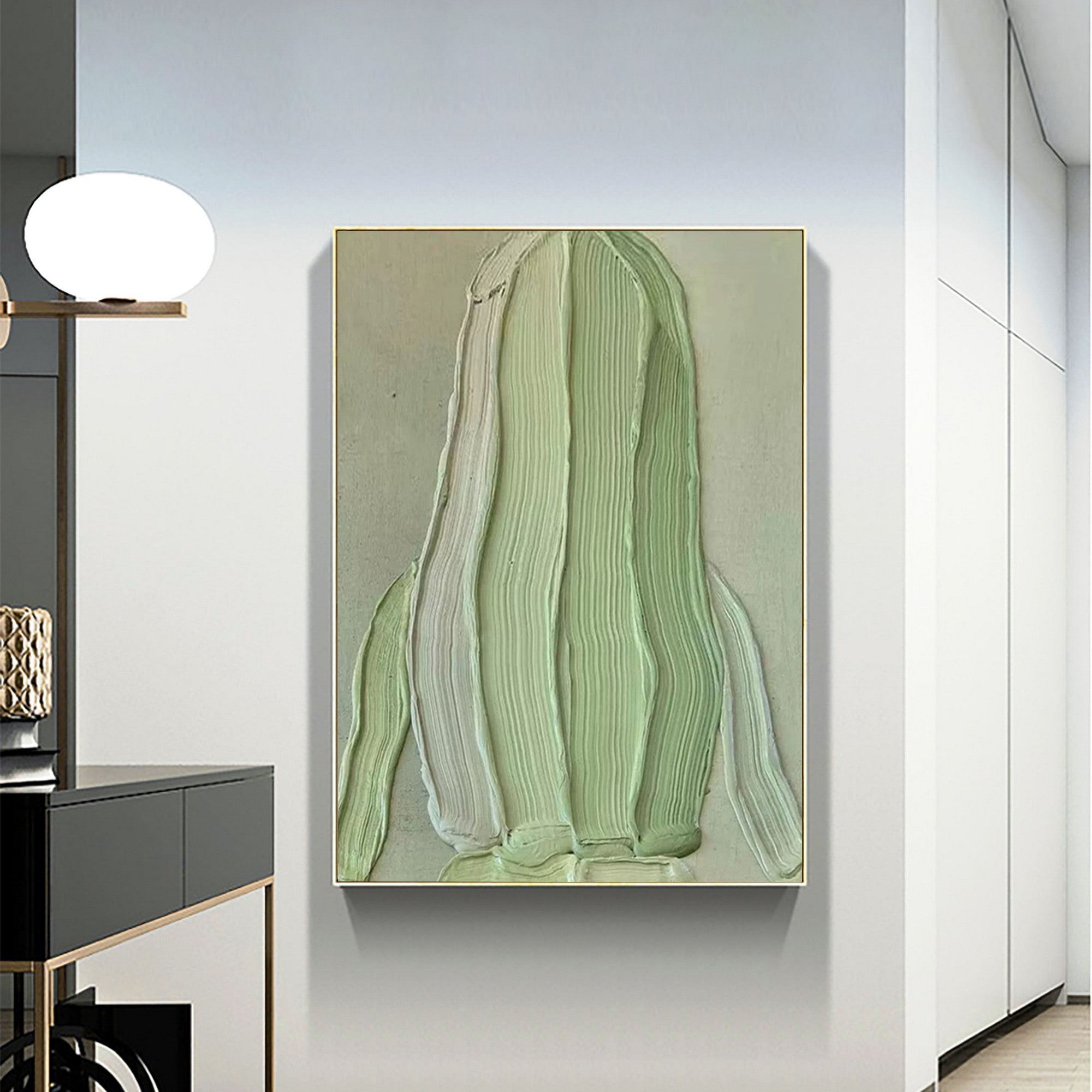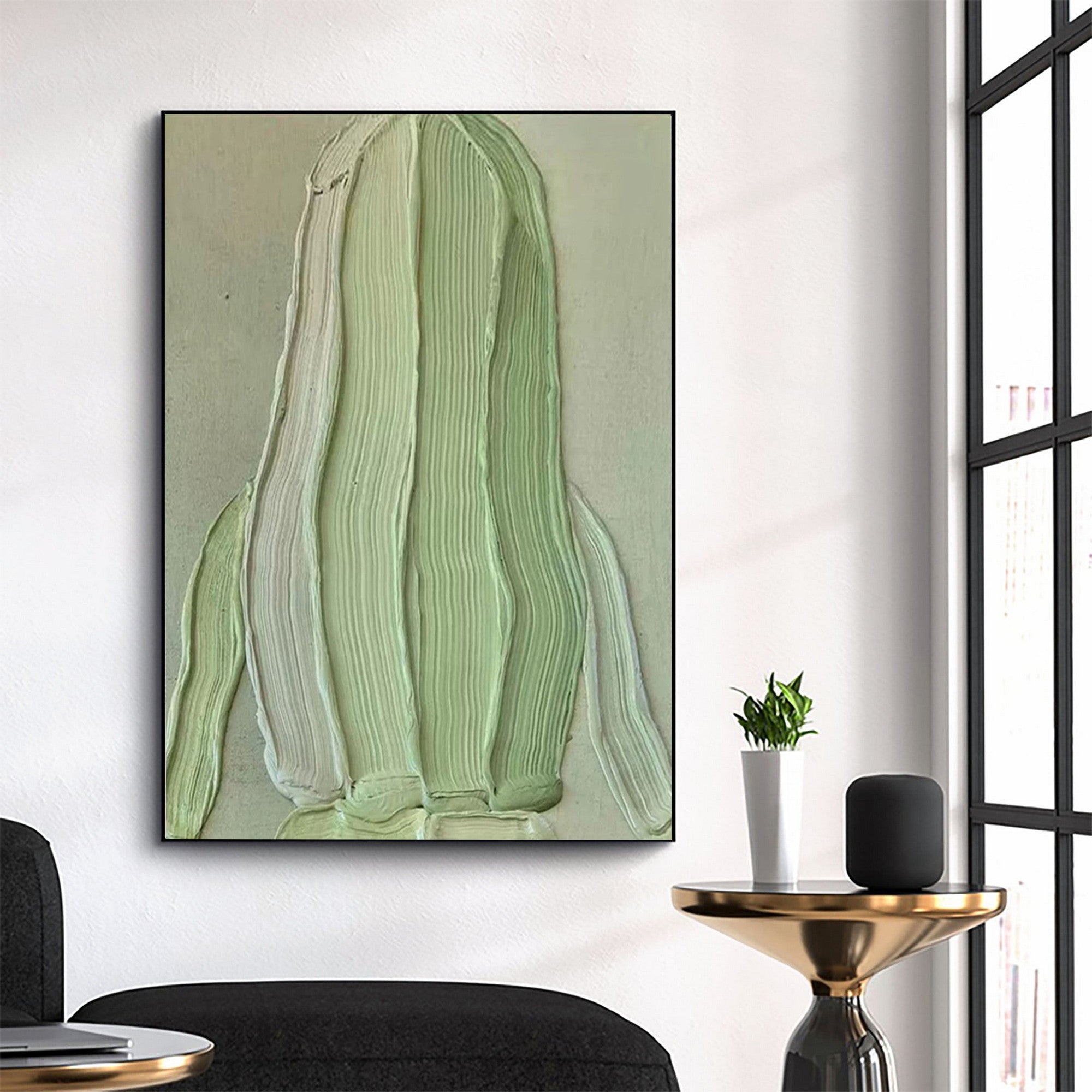 This green abstract portrait textured wall art combines soft green hues with dynamic brushstroke textures, creating a serene yet captivating visual appeal. Its minimalist design makes it a perfect addition to modern wall decor and contemporary home decor. Ideal for living room wall art, bedroom decor, or as part of an artwork gallery, this piece exudes a sense of calm and sophistication.