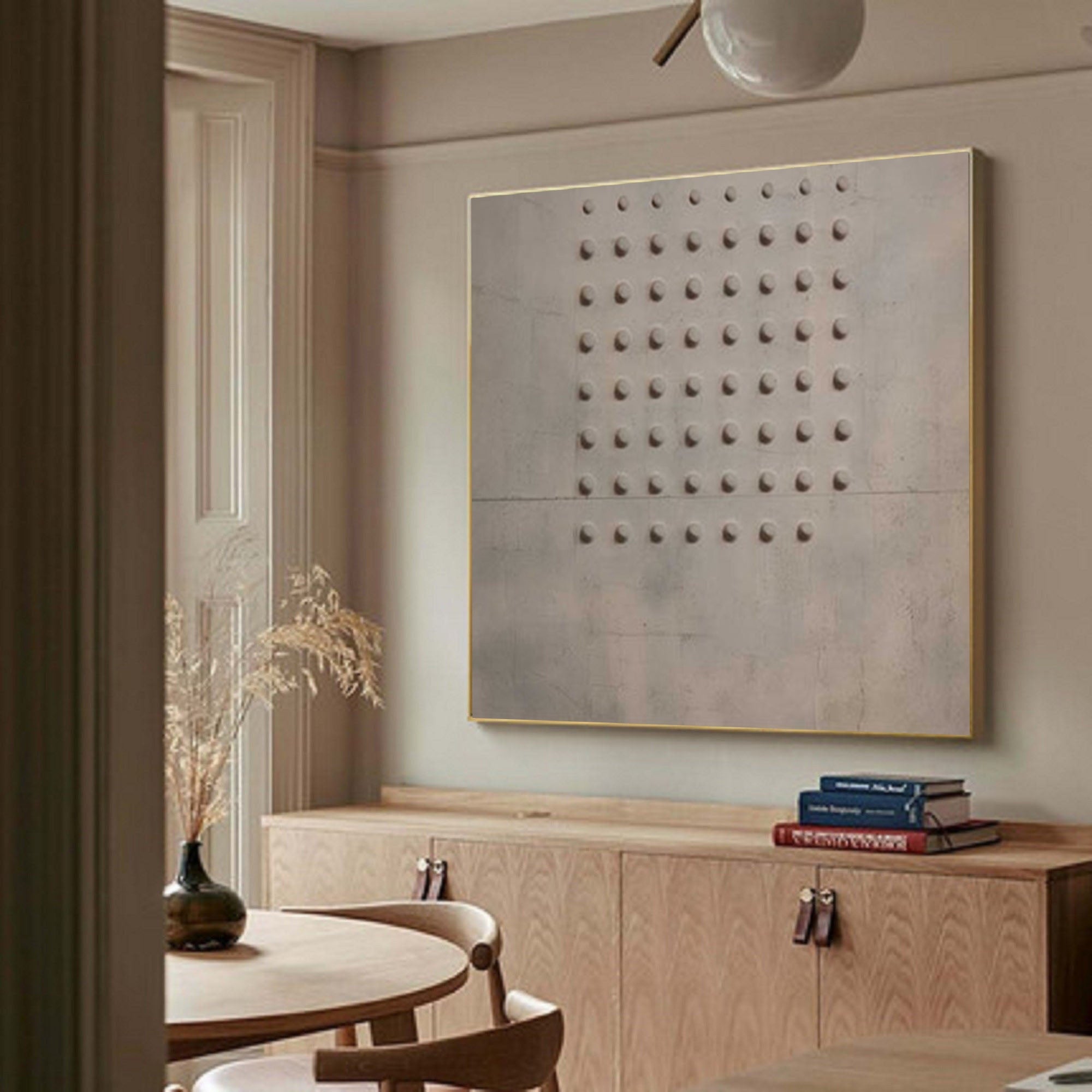 This wabi sabi abstract textured wall art seamlessly integrates into modern home decor, offering a perfect balance of simplicity and depth. The piece showcases unique textures and abstract forms, celebrating the beauty of imperfection and bringing a warm, inviting atmosphere to any space. Ideal for living room wall decor or dining area wall decor, its subtle yet impactful design complements various interior styles, from mid-century modern artwork to coastal wall art.