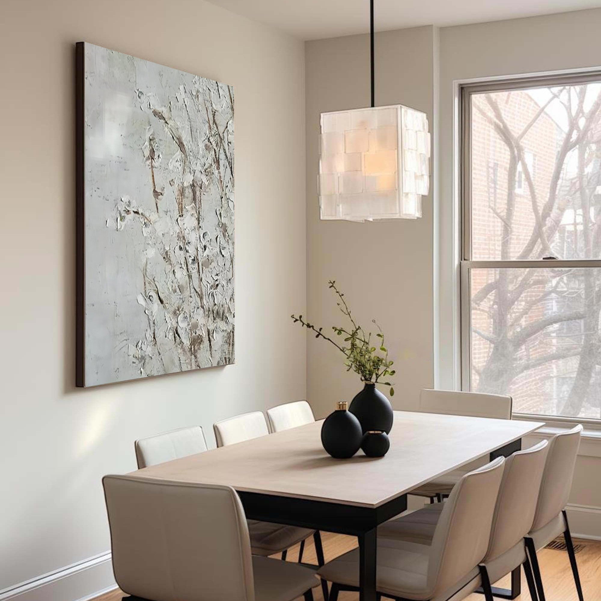 This stunning Wabi Sabi inspired textured abstract wall art captures the essence of simplicity and beauty in imperfection. The rich textures and soft, neutral tones create a sense of tranquility, making it the perfect piece for modern living room decor or any minimalist home. The intricate layering of paint gives the piece depth, inviting the viewer to engage with it on a tactile level, and it complements any contemporary space with a subtle yet sophisticated flair.