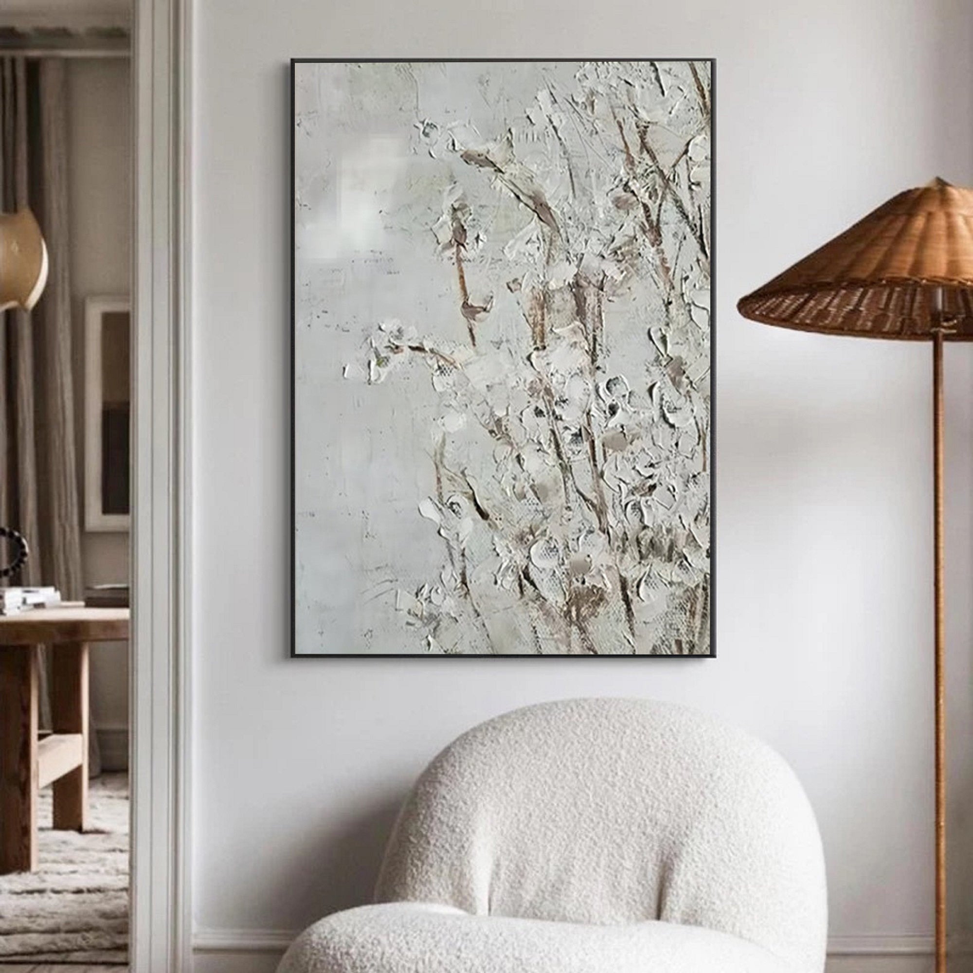 Ideal for those who appreciate the beauty of original artwork, this piece brings a unique sense of artistry and harmony to your home or office. Whether displayed in your living room, bedroom, or as a feature in your art collection, this textured abstract painting offers an elegant touch to any modern decor style. Its understated beauty embodies the Wabi Sabi philosophy, making it a timeless addition to any space that values the art of simplicity.