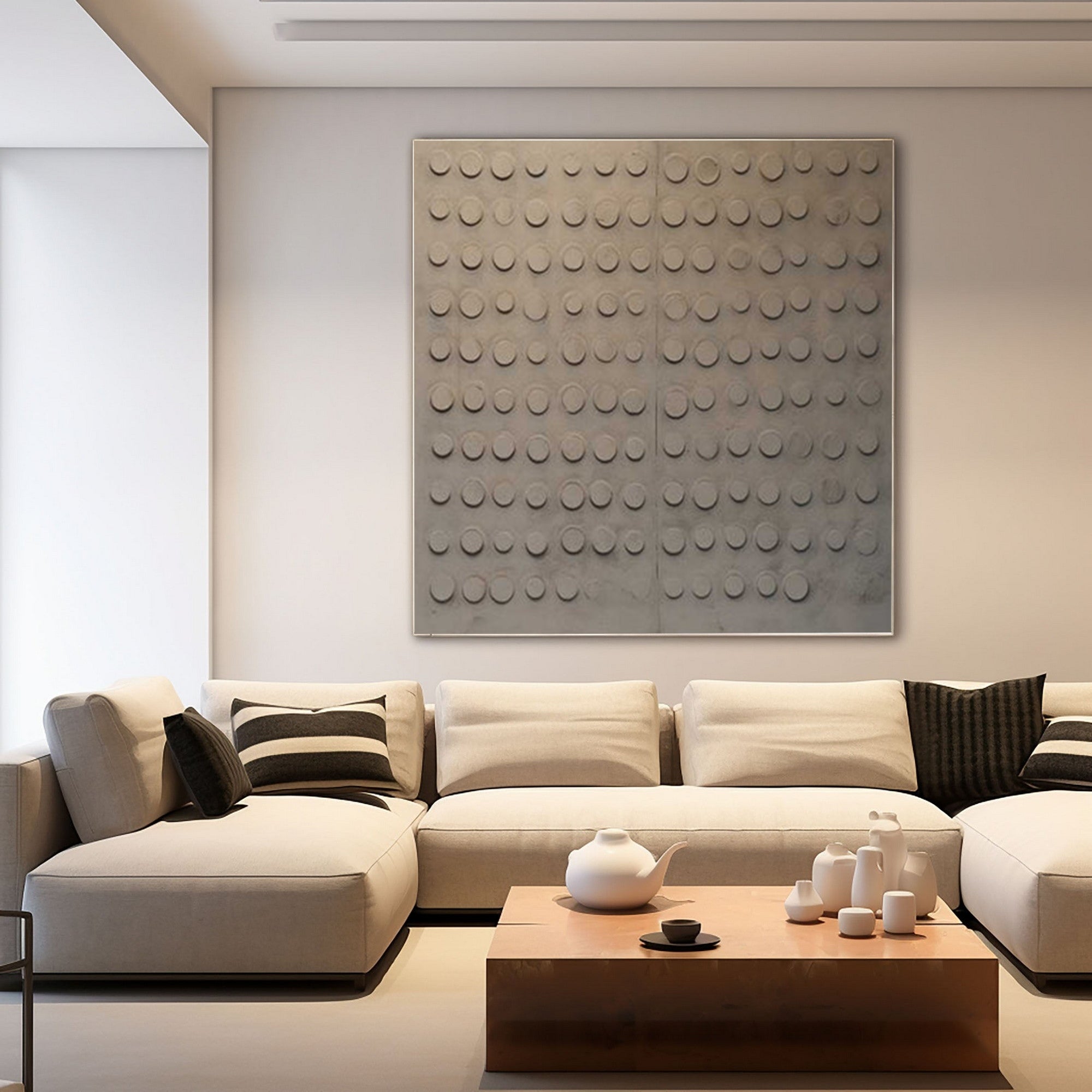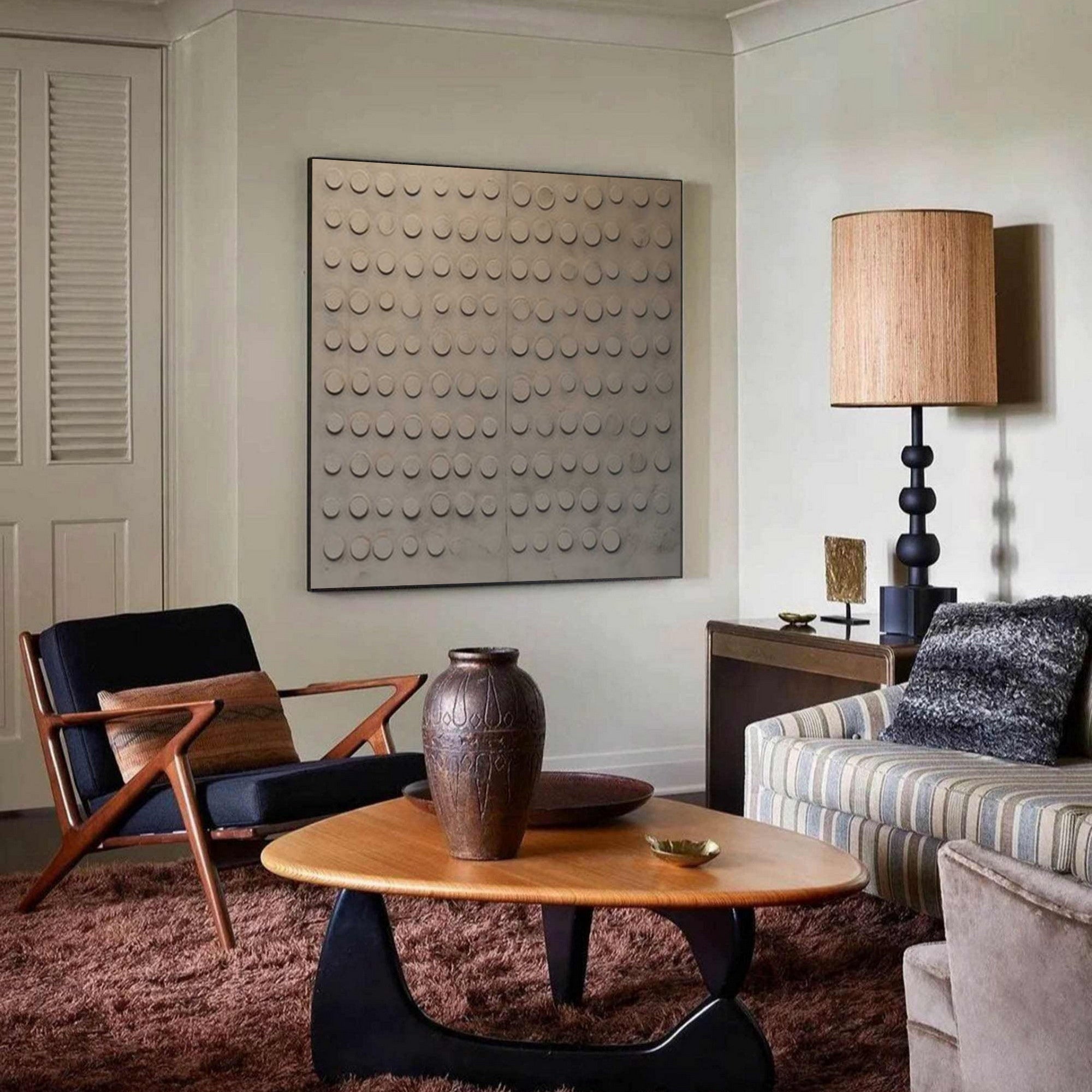 This wabi sabi textured wall art is a captivating piece that brings a sense of tranquility and depth to any modern living space. The art highlights the beauty of imperfection with its rich, textured surface and organic design, making it a perfect addition to your living room wall decor or dining area wall decor. Its minimalist and contemporary aesthetic blends seamlessly with various interior styles, creating a calming atmosphere in your home.