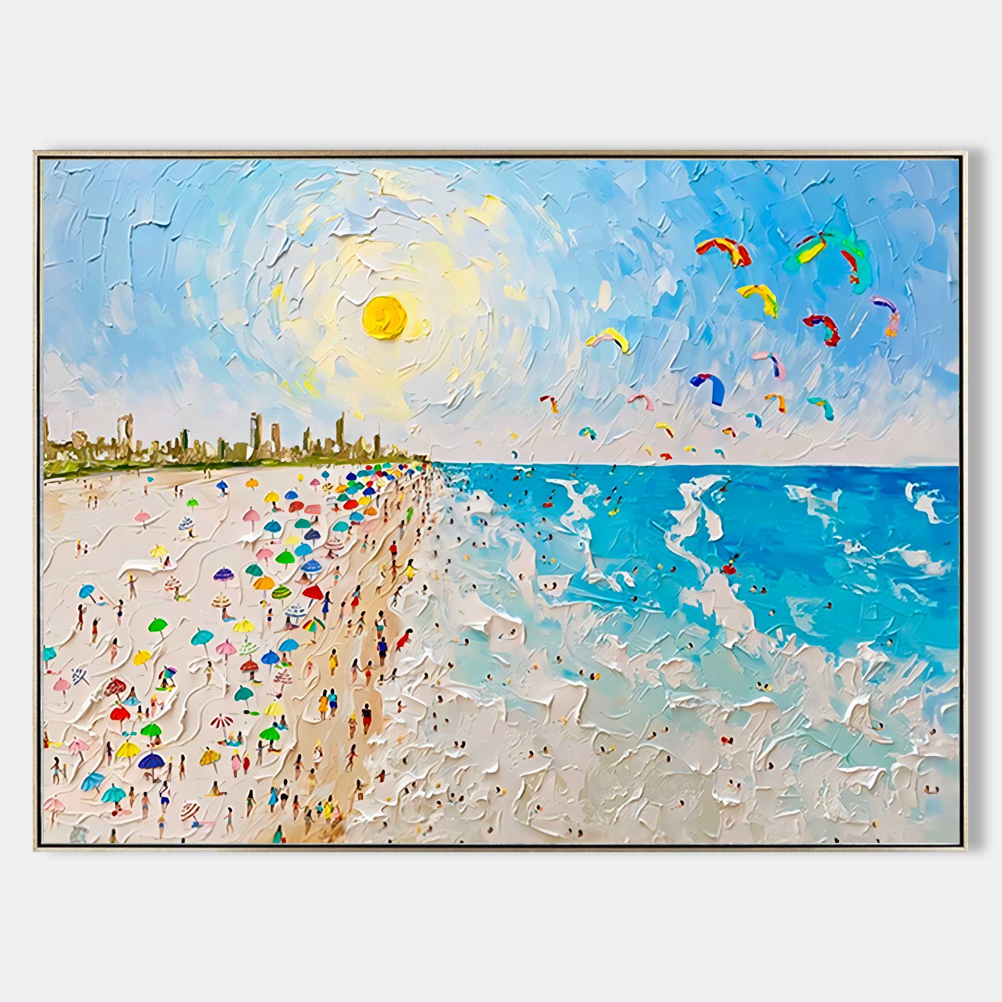 Colorful Beach Scene Textured Wall Art for Modern Coastal Living Spaces #SG203