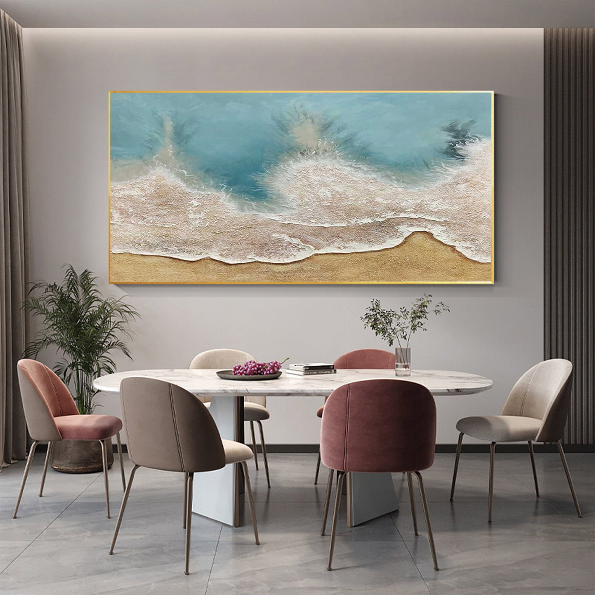 Crafted with high-quality materials, this textured wall art adds depth and character to any room. The soft, flowing lines and soothing color palette create a relaxing environment, making it ideal for modern home decor or coastal wall art. Whether it’s hung in your living room or bedroom, this artwork effortlessly brings a calming and timeless charm to your space. For anyone seeking to enhance their artwork gallery or add a statement piece to their dining area wall decor, this textured masterpiece is the perfect choice.