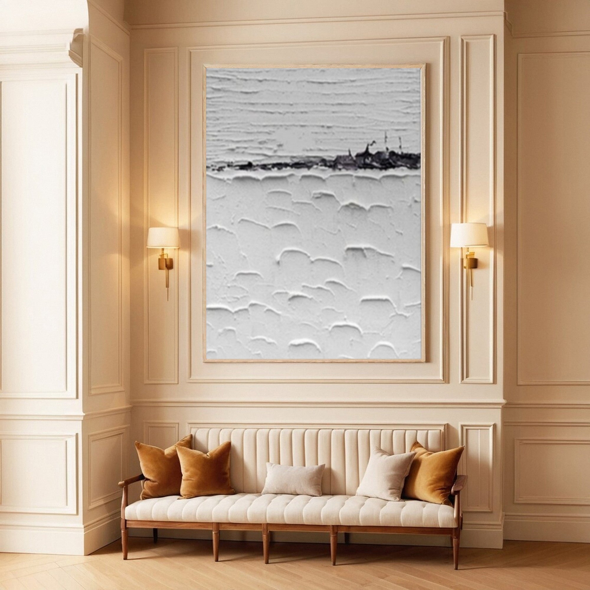 This black and white textured wall art by homeproglobal features a stunning contrast of light and dark, with intricate plaster texture that gives it a unique, tactile quality. The black and white tones blend seamlessly to create an elegant and sophisticated look that suits a wide variety of modern spaces. Whether hung in a minimalist living room or a contemporary gallery wall, this piece is designed to elevate your home or office decor.