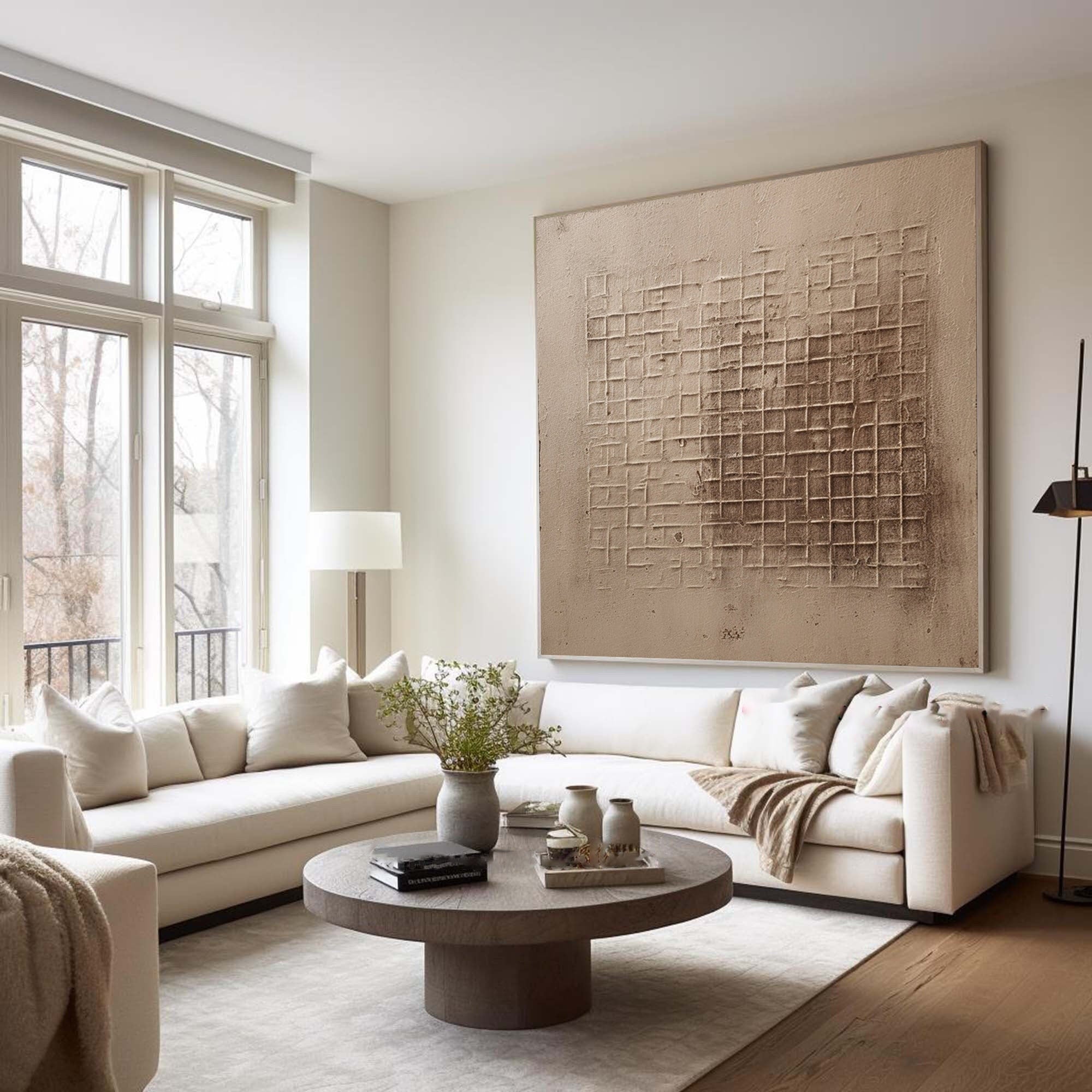 This wabi sabi abstract textured wall art brings a calming presence to any modern space. Its soft, organic lines and neutral tones embody the beauty of imperfection, making it a perfect piece for those who appreciate minimalist and contemporary design. Whether displayed in your living room wall decor or dining area wall decor, this large canvas wall art adds a sophisticated and unique touch to your home. The tactile quality of the texture creates an engaging focal point, while its subtle elegance enhances a variety of interior styles.