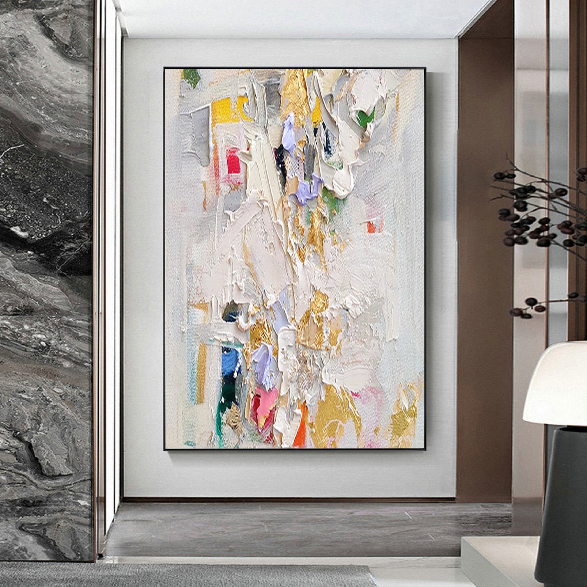 Big Textured Abstract Colorful Wall Art for Contemporary Living Room Decor #CA004