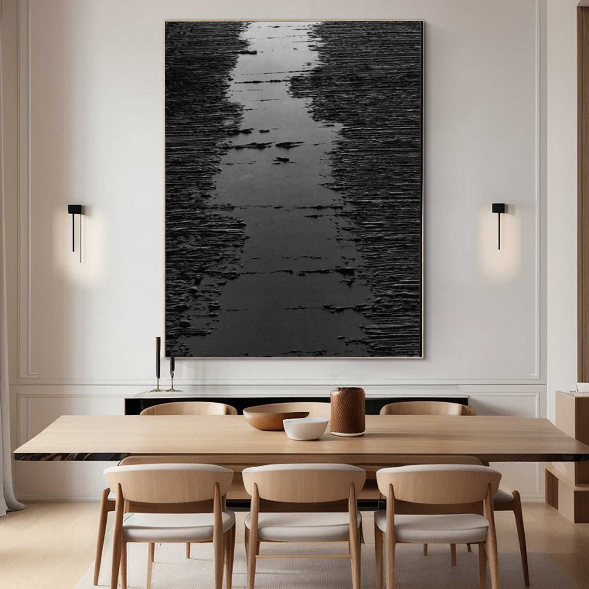 Homeproglobal Black Textured Wall Art Painting for Modern Home Decor #SG040