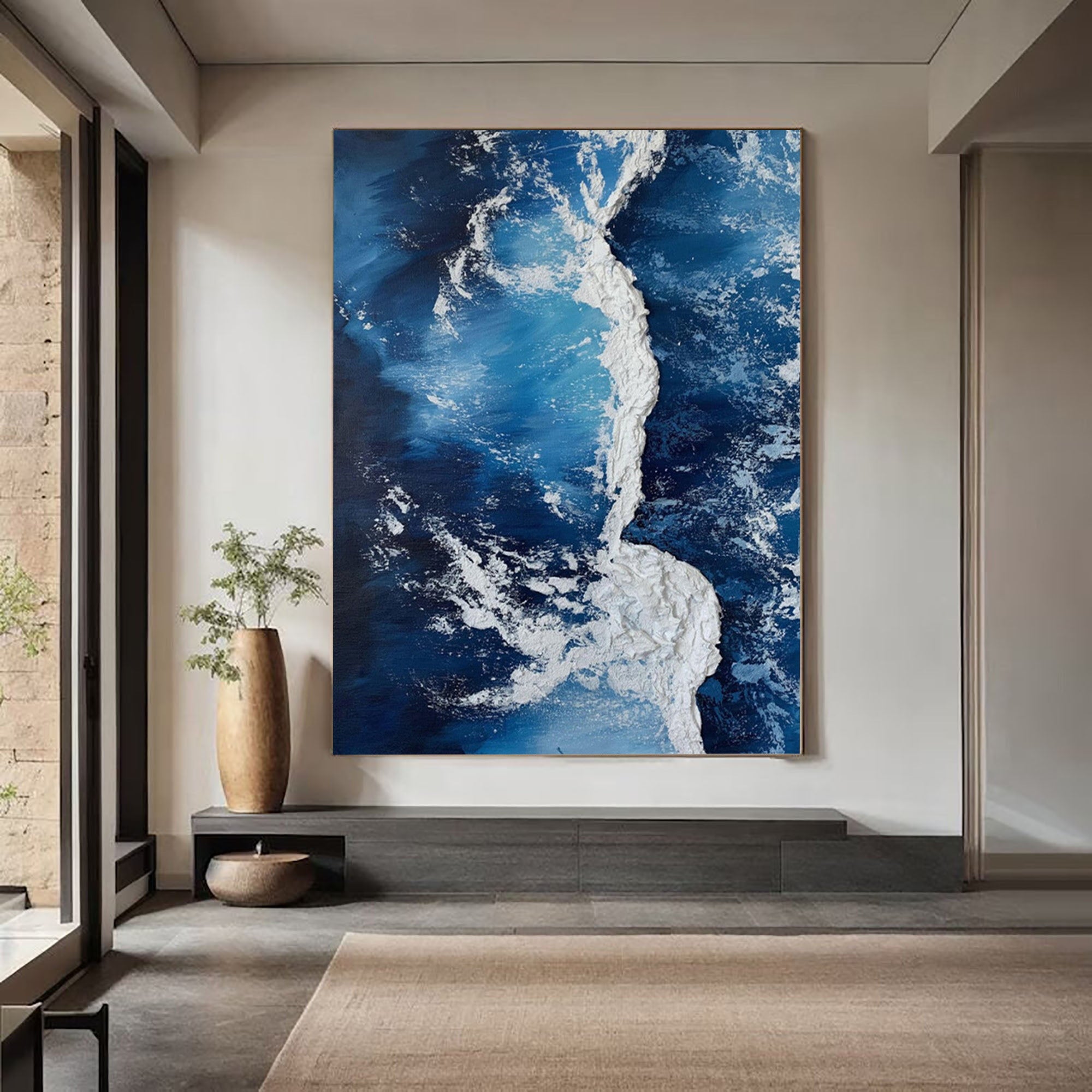 Abstract Minimalist Blue and White Textured Wall Art for Modern Living Spaces #SG152
