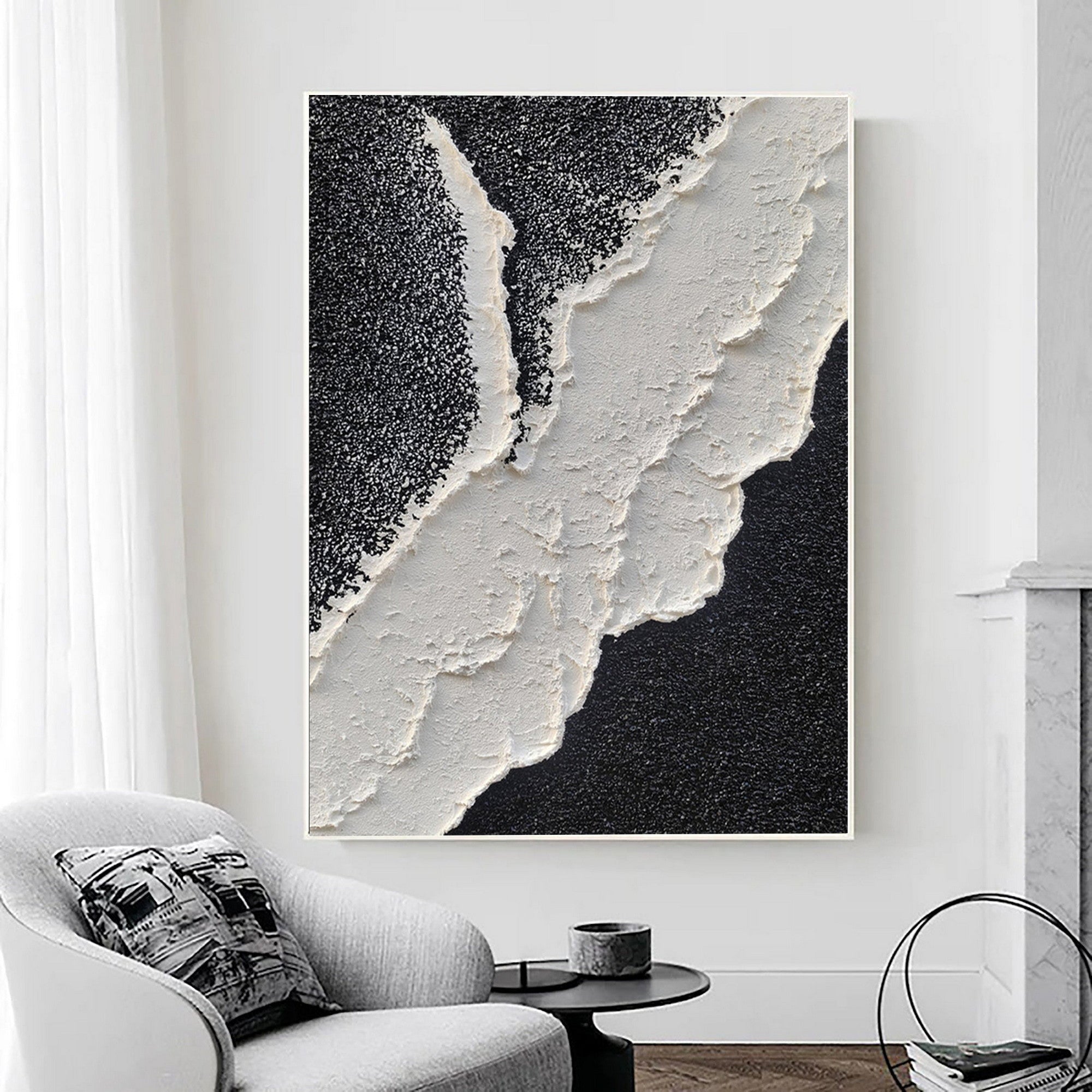 Textured Abstract Wall Art with Bold Black and White Elements for Modern Home Decor #SG030