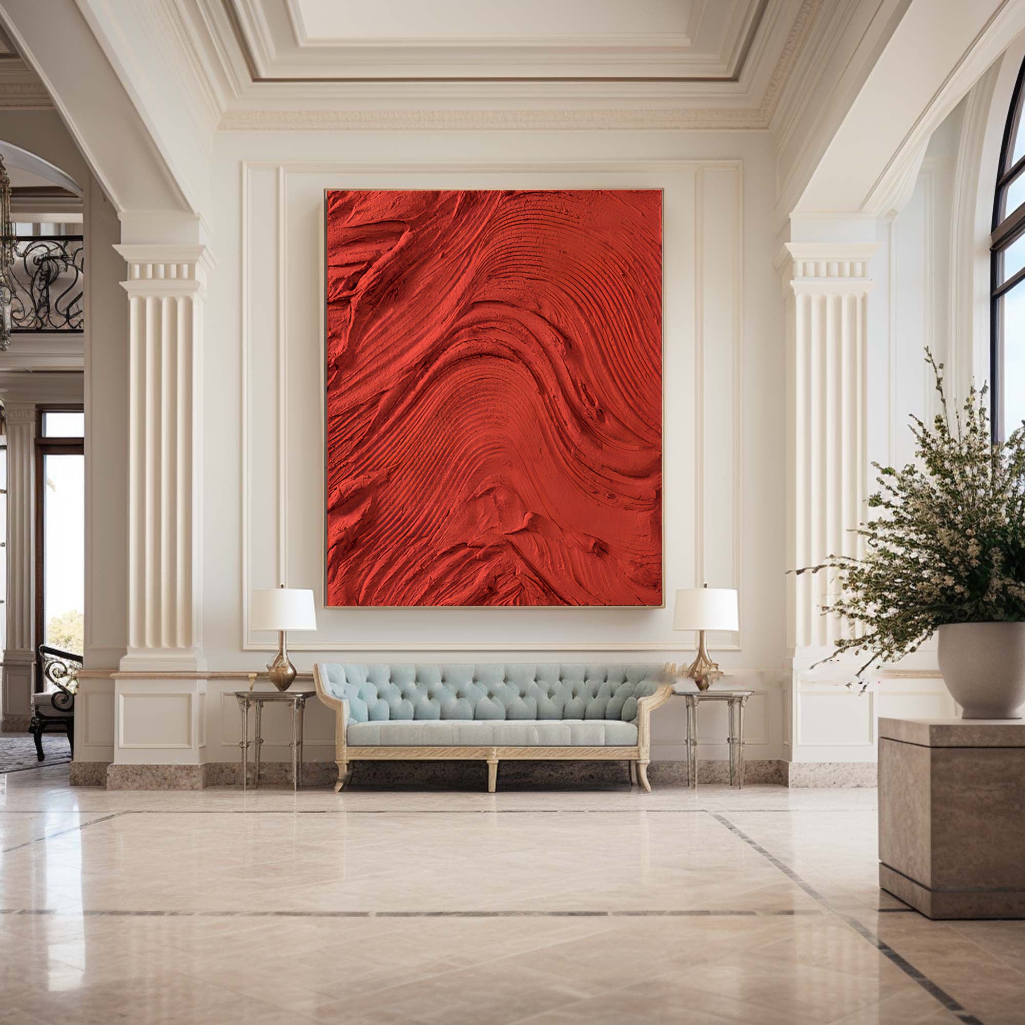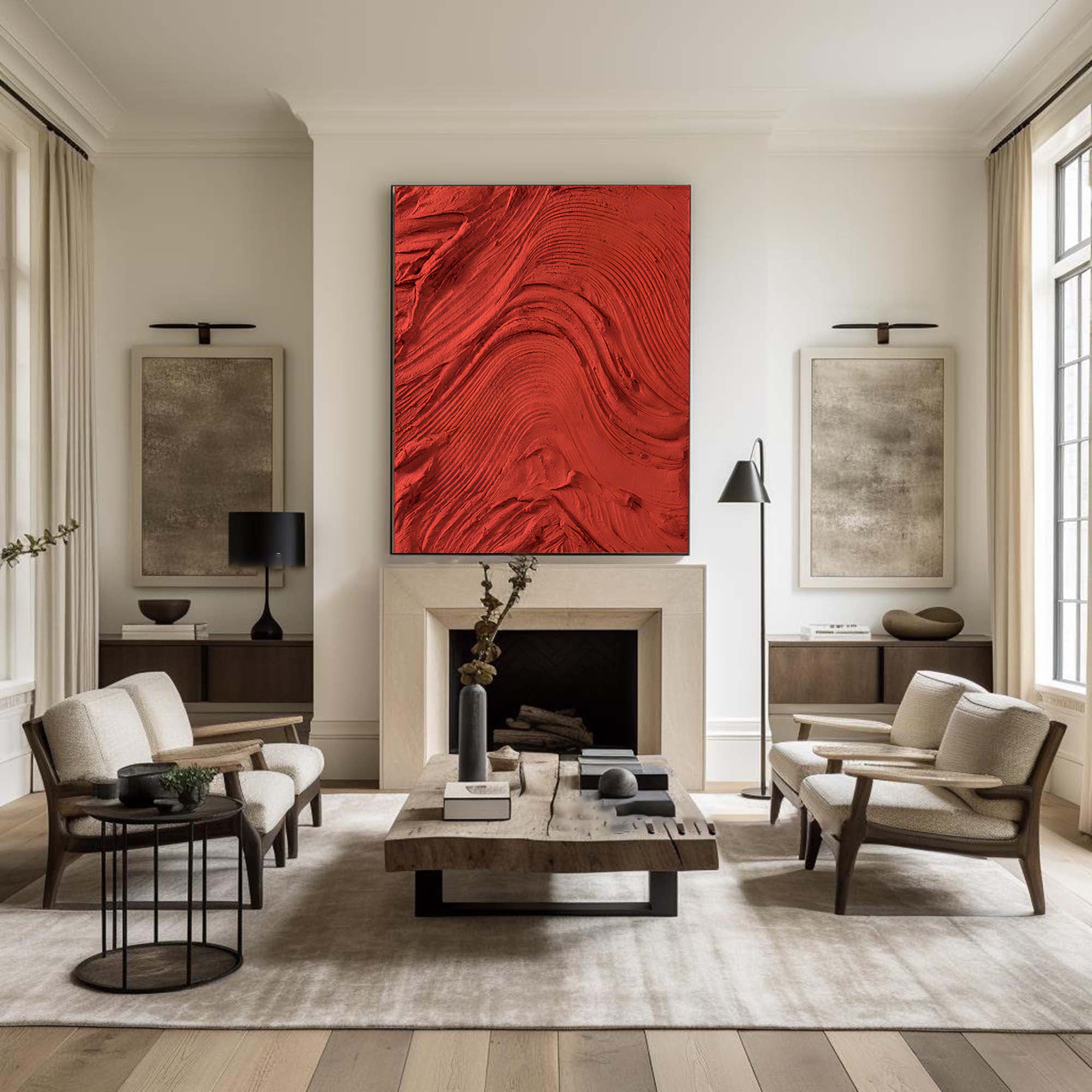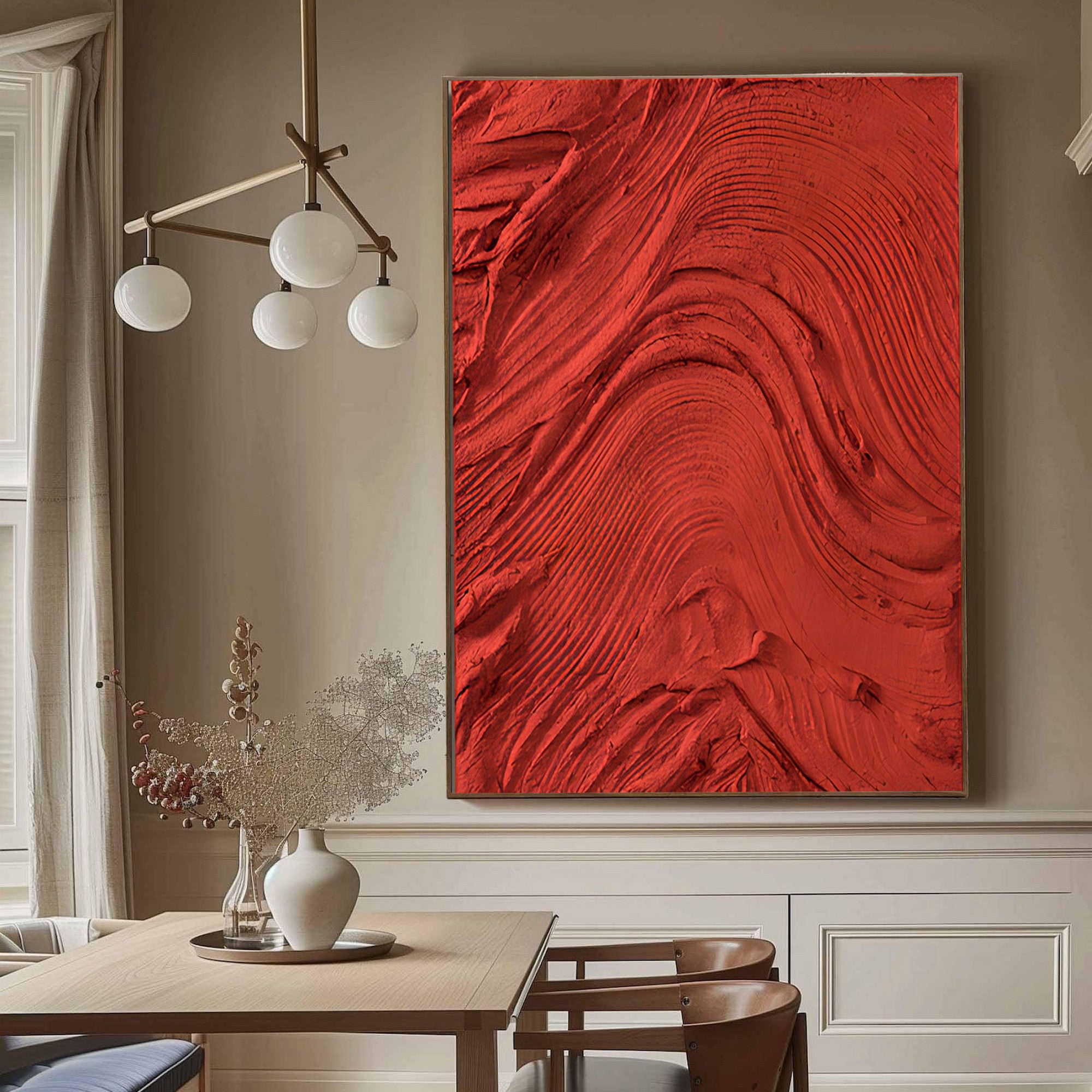 This red textured wall art features bold and dynamic strokes that create a striking visual impact, making it the perfect centerpiece for any contemporary home decor. The abstract design in vibrant red tones enhances the tactile experience, inviting viewers to explore the texture and depth of the painting. Ideal for adding energy and warmth to your living room, this piece also complements various styles of dining area wall decor and modern interior design.