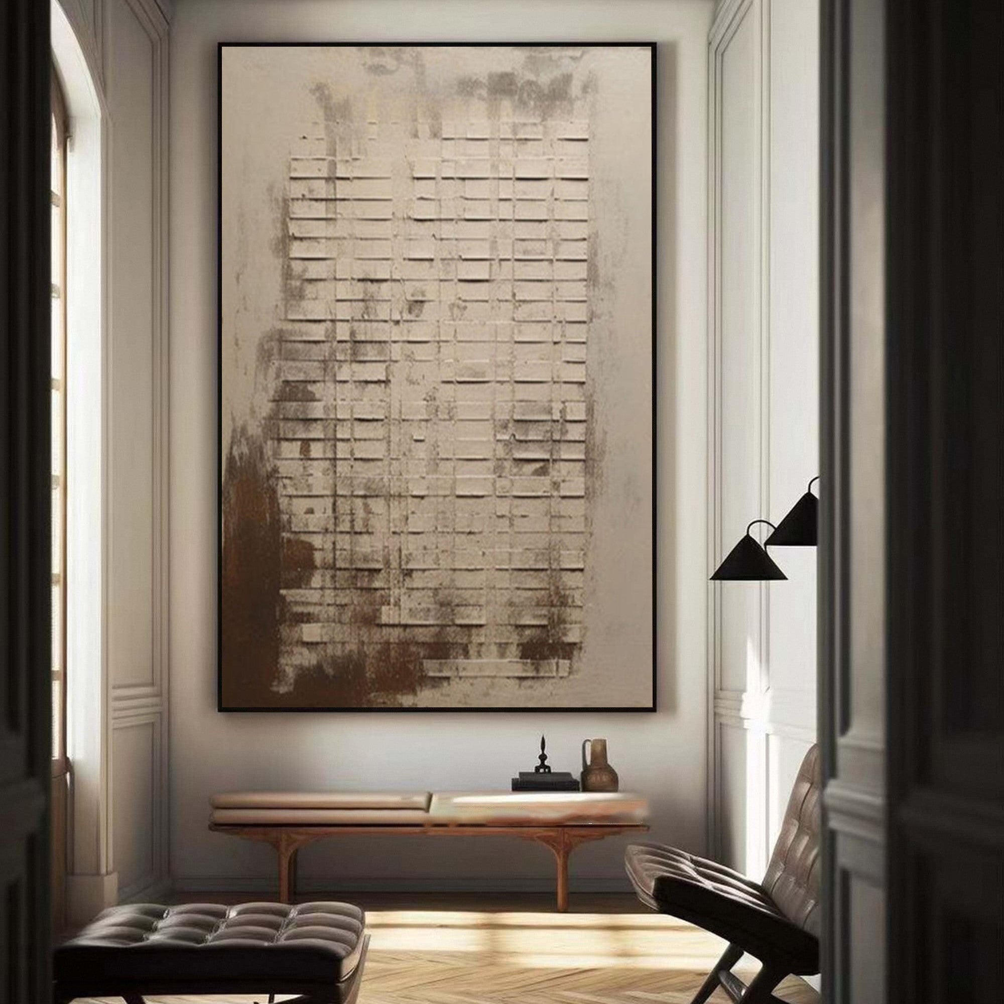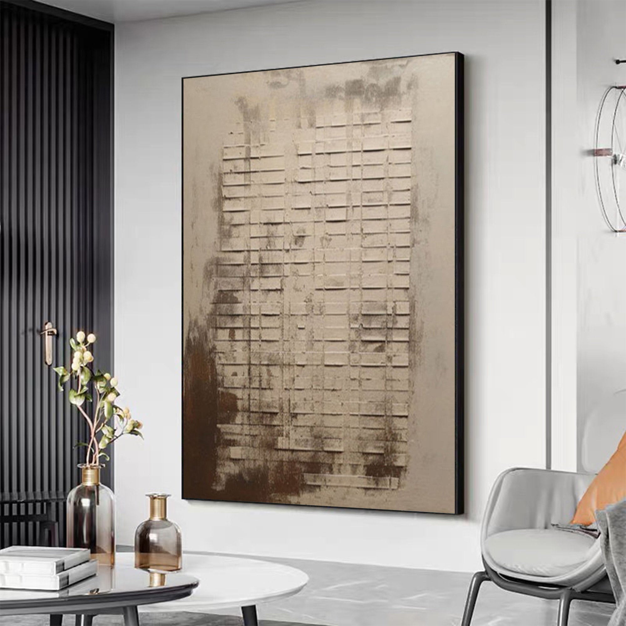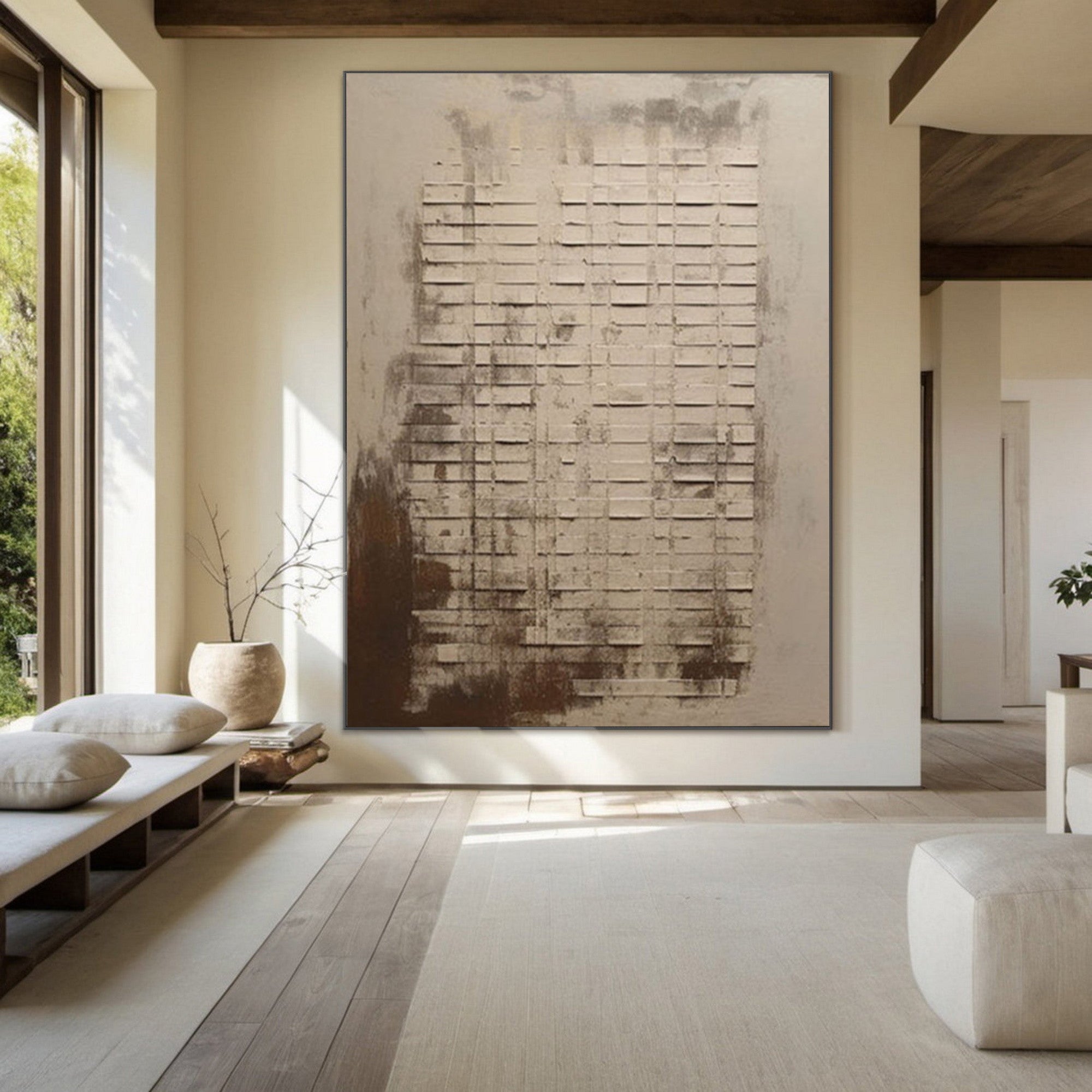 Crafted with great attention to detail, this large canvas wall art enhances the visual interest of your home with its intricate textures and striking design. Its tactile nature adds depth to your space, making it perfect for those who appreciate the subtle beauty of wabi sabi. Ideal for anyone looking for unique wall art for living room or dining room wall decor, this piece will become a focal point in any room. Browse our artwork gallery and make this exquisite painting part of your collection today.