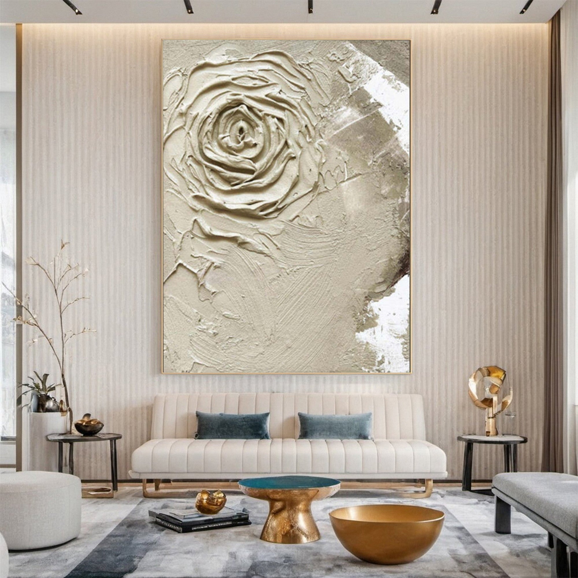 WabiSabi Textured Floral Artwork with Rose Design for Contemporary Wall Decor #TX220