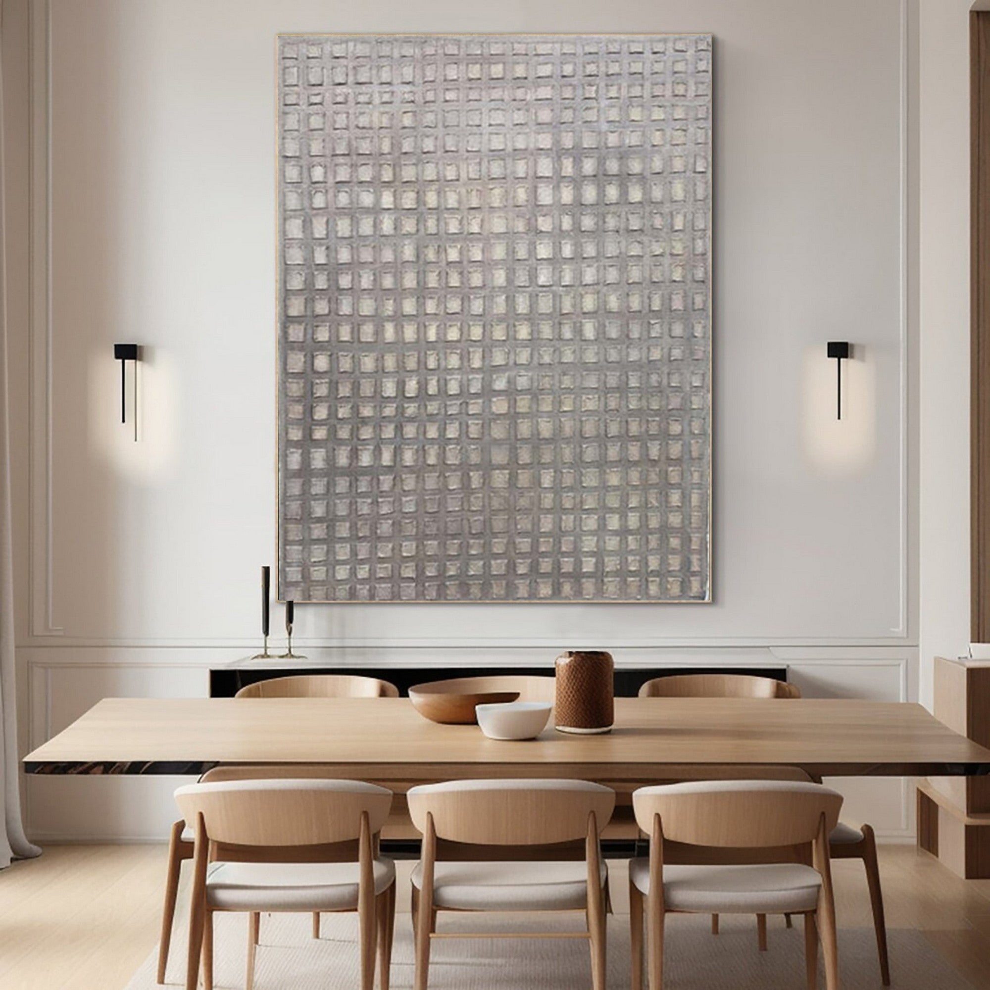 WabiSabi Wall Art Abstract Grid Painting for Minimalist Living Room or Bedroom Decor #TX178