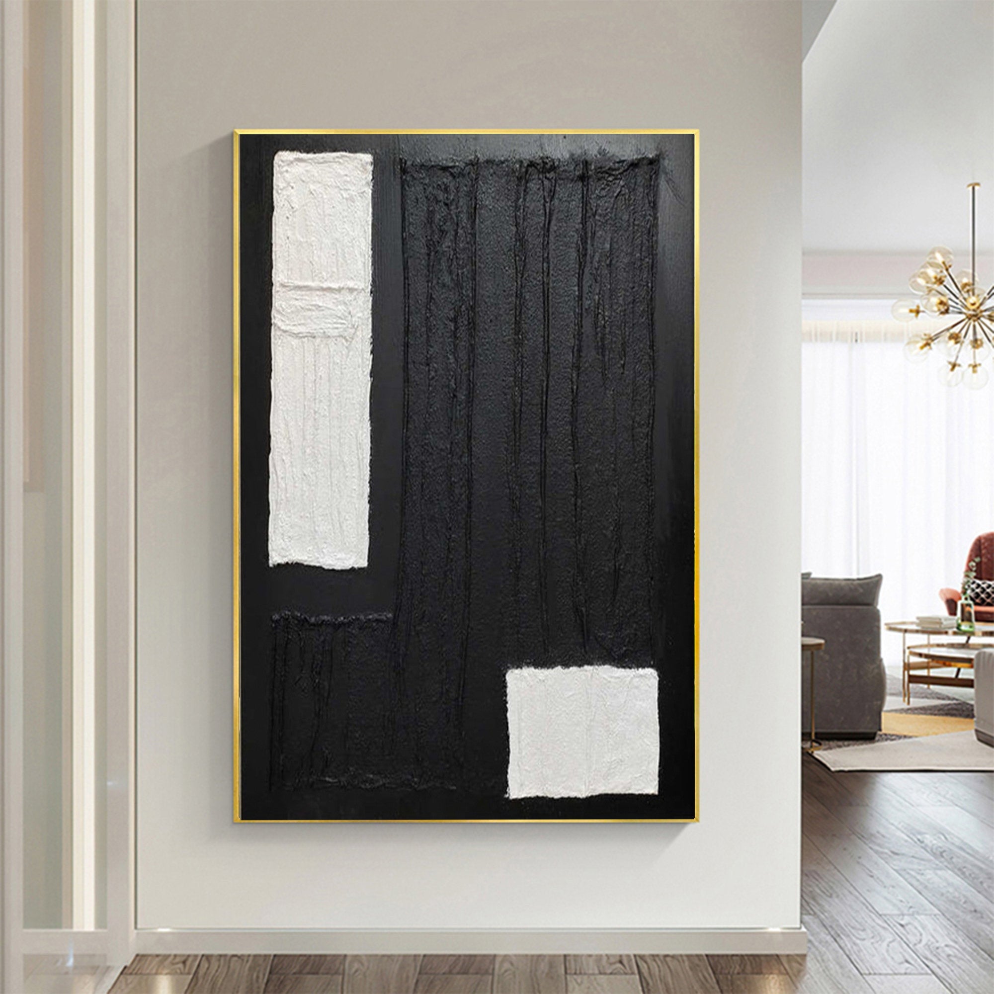 WabiSabi Wall Art Black and White Textured Art for Contemporary Decor #TX177