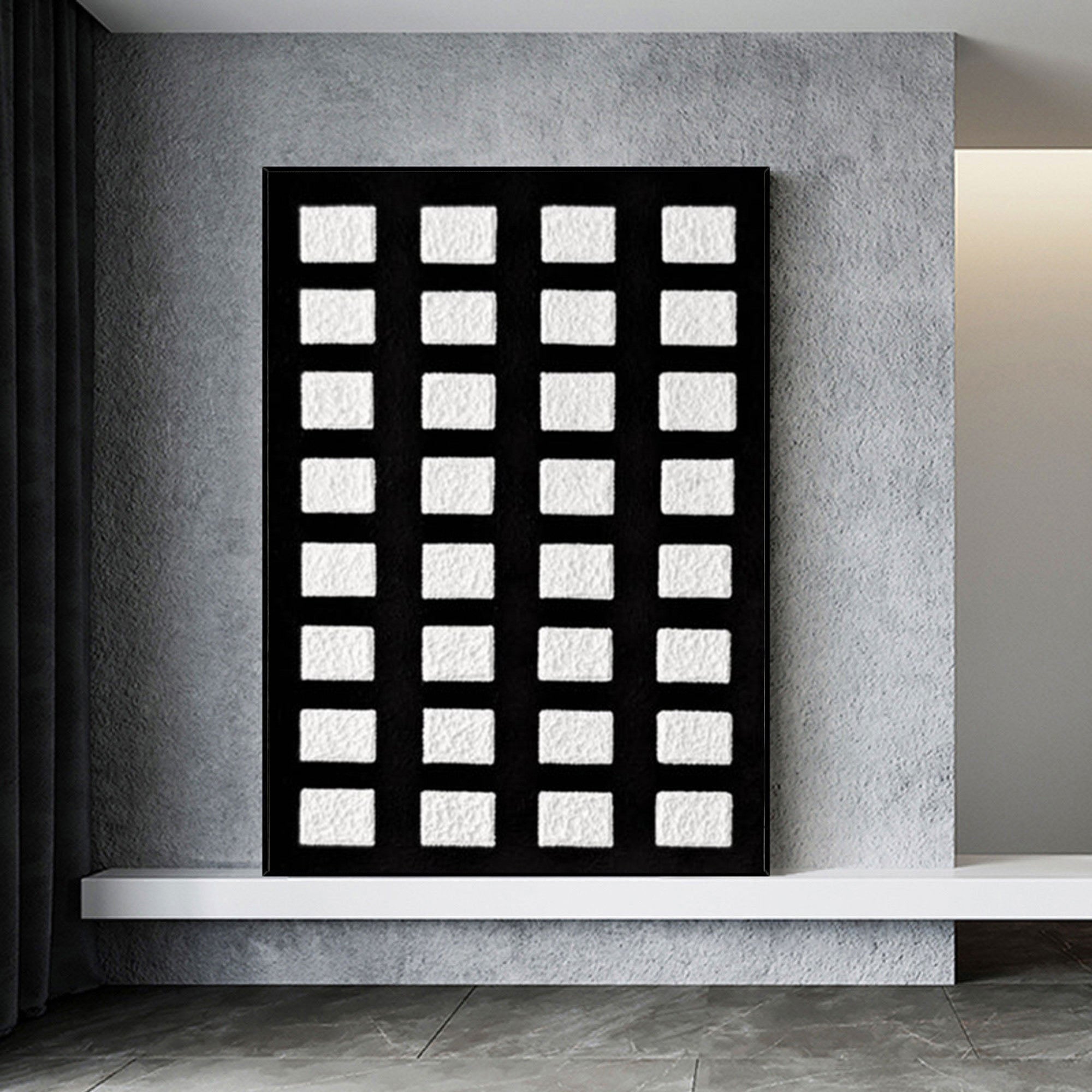 WabiSabi Wall Art Black and White Textured Art for Large Artwork Displays #TX157