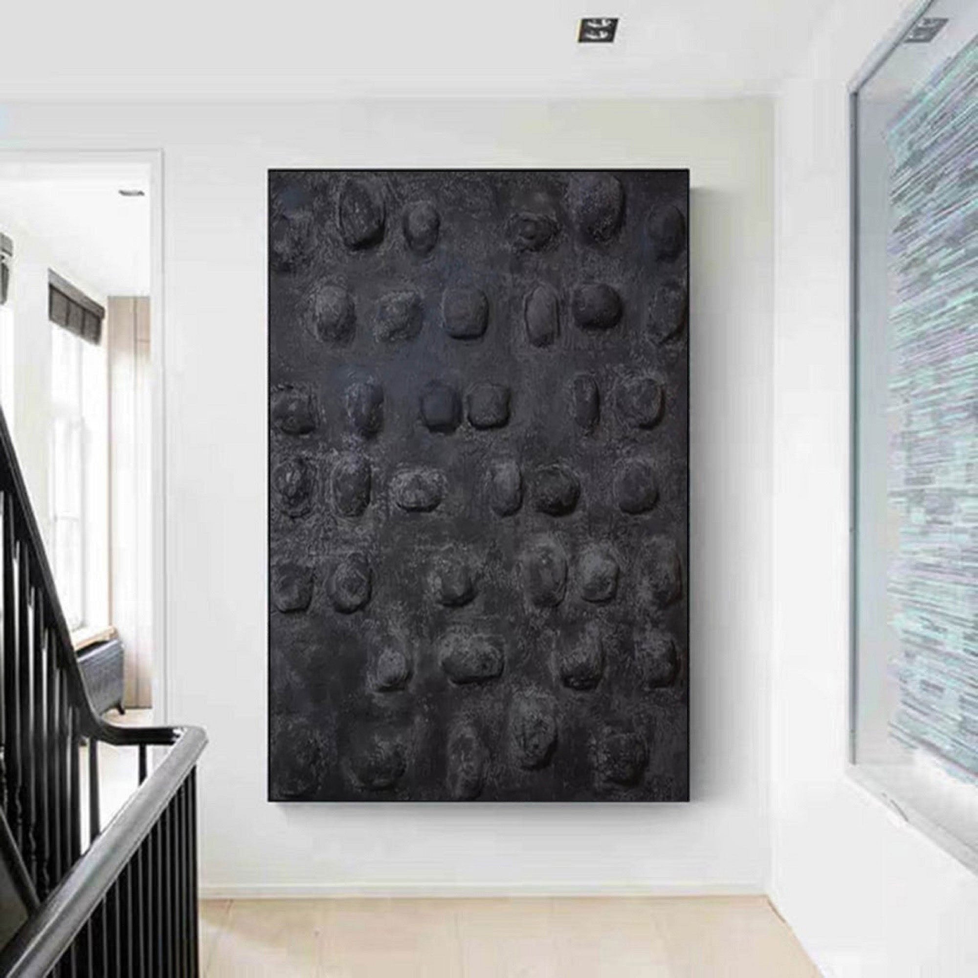 WabiSabi Wall Art Black Textured Hand Paintings for Sophisticated Home Decor #TX176