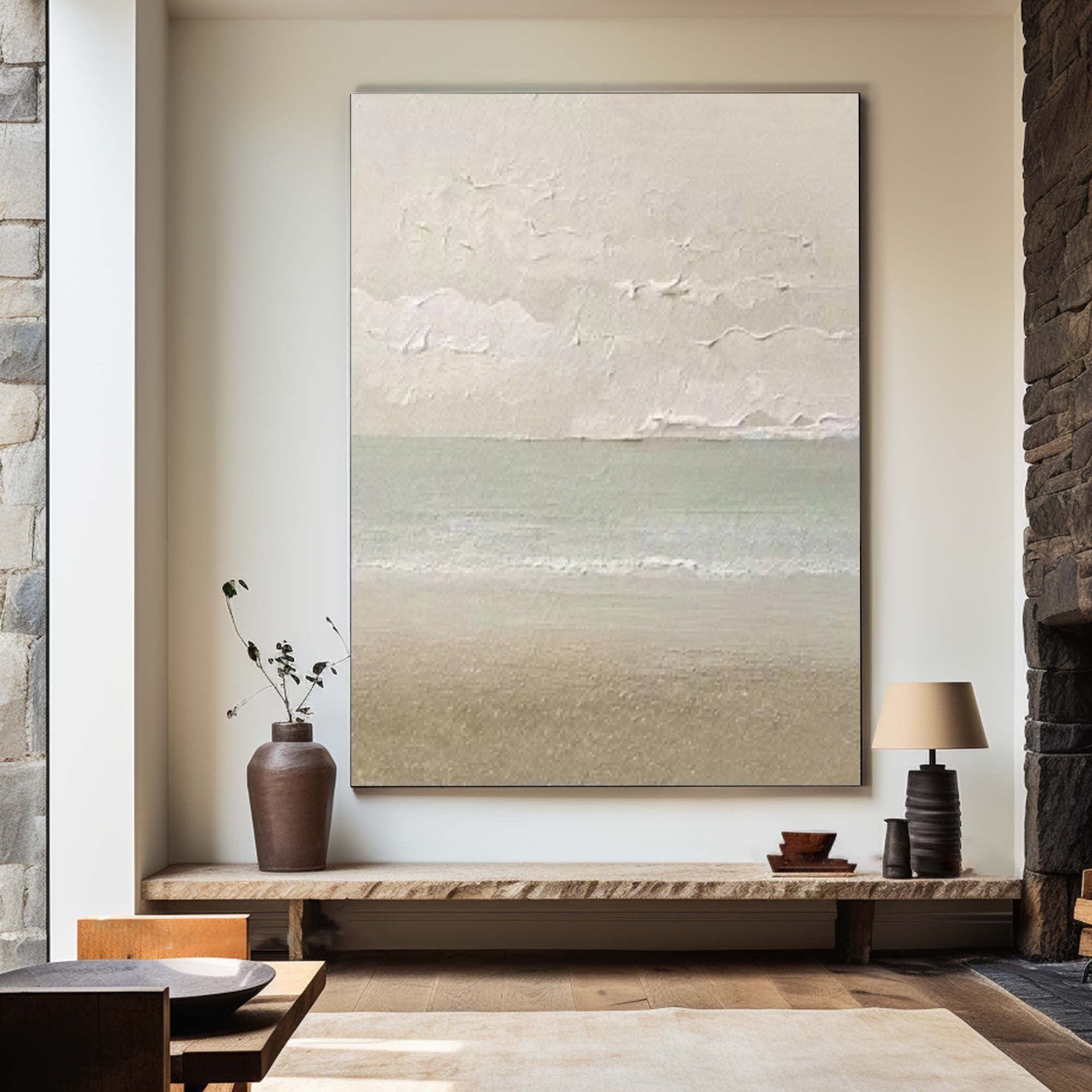 WabiSabi Wall Art Textured Abstract Beach Painting for Minimalist Home Decor #TX164