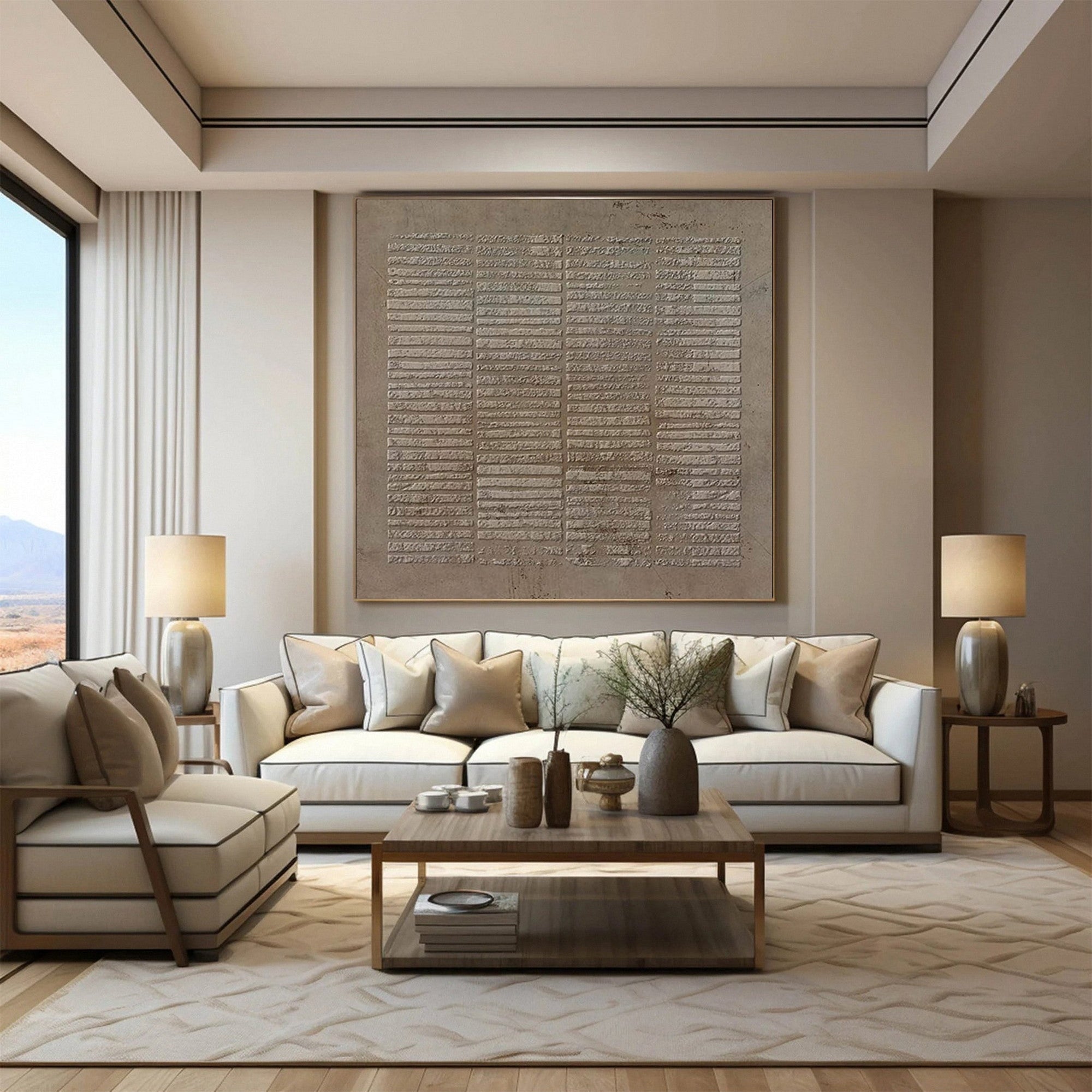 This WabiSabi Wall Art piece combines abstract textures with a sense of timeless elegance, making it a perfect addition to any modern home decor. The textured strokes and layered design evoke the beauty of imperfections, making this artwork an ideal choice for anyone looking to add a unique touch to their living room wall decor or office space. It reflects the WabiSabi philosophy, embracing the beauty of the natural world and the transient nature of time.