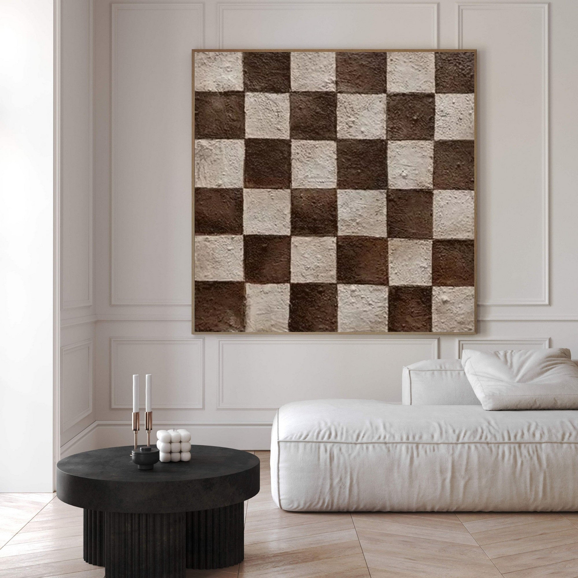 WabiSabi Wall Art Abstract Grid Painting for Minimalist Living Room or Bedroom Decor #TX178