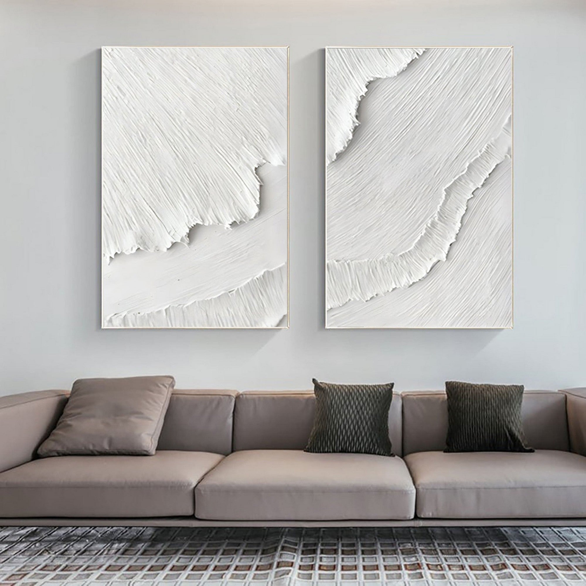 Minimalist White Textured Wall Art Set for Modern Living Room Decor #SP035