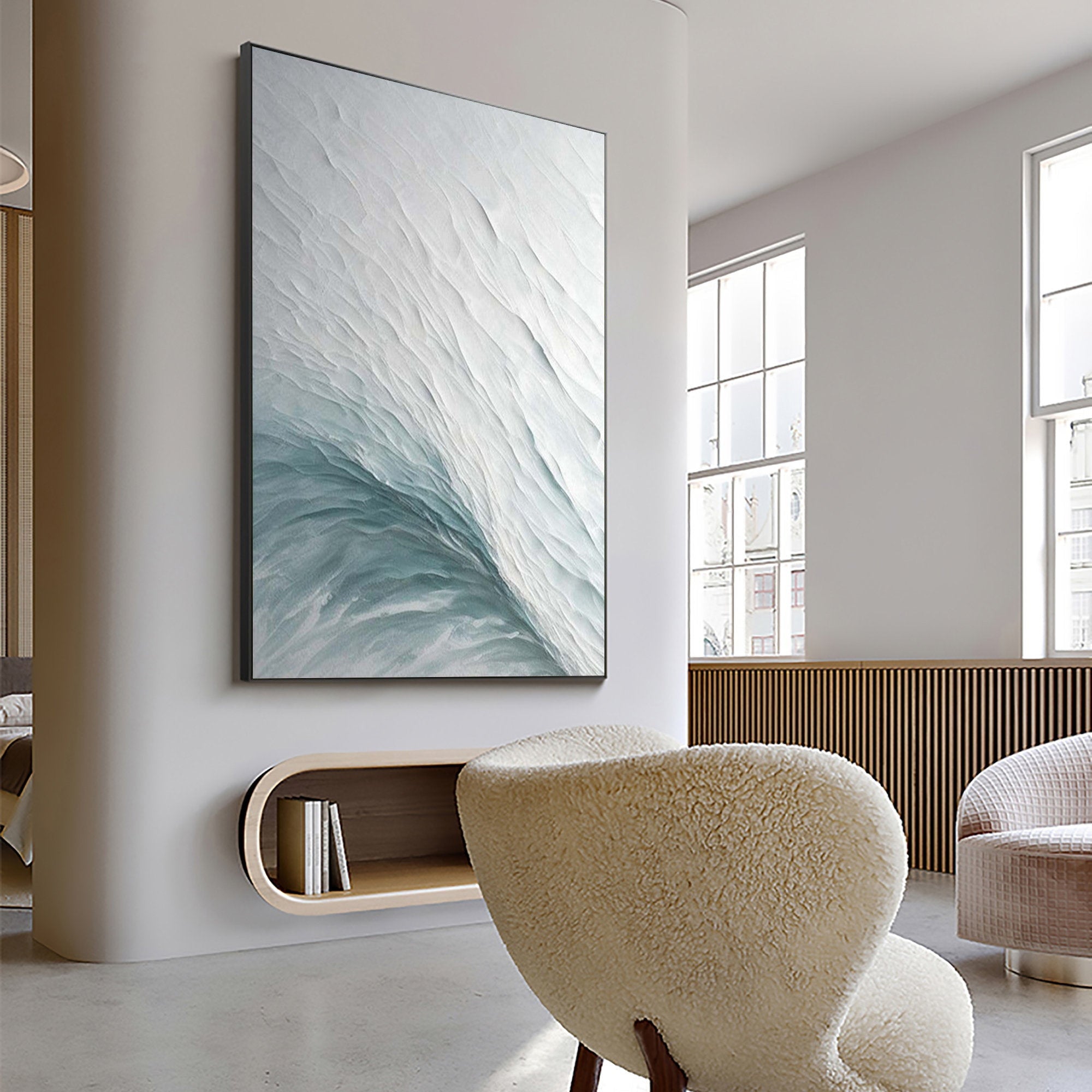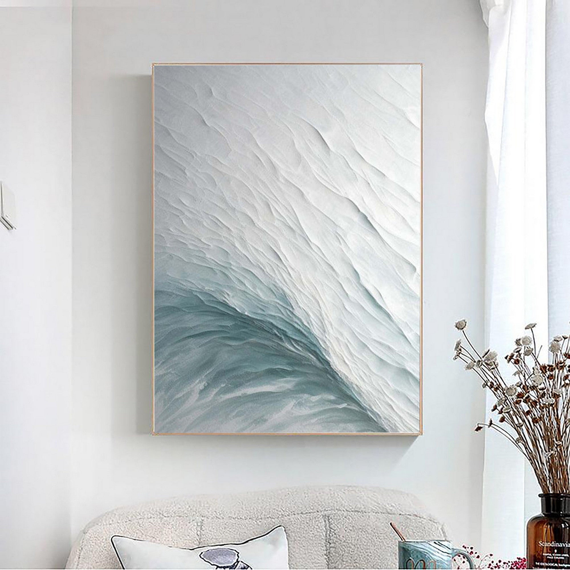 This textured abstract wave wall art captures the fluid motion of waves, bringing a sense of calm and serenity to your modern dining room decor or living room wall art. The delicate layering of textures combined with the soothing gradient tones creates a harmonious blend of artistry and nature. Perfect for those who appreciate abstract wall decor with a contemporary touch, this piece enhances the aesthetic of any interior.