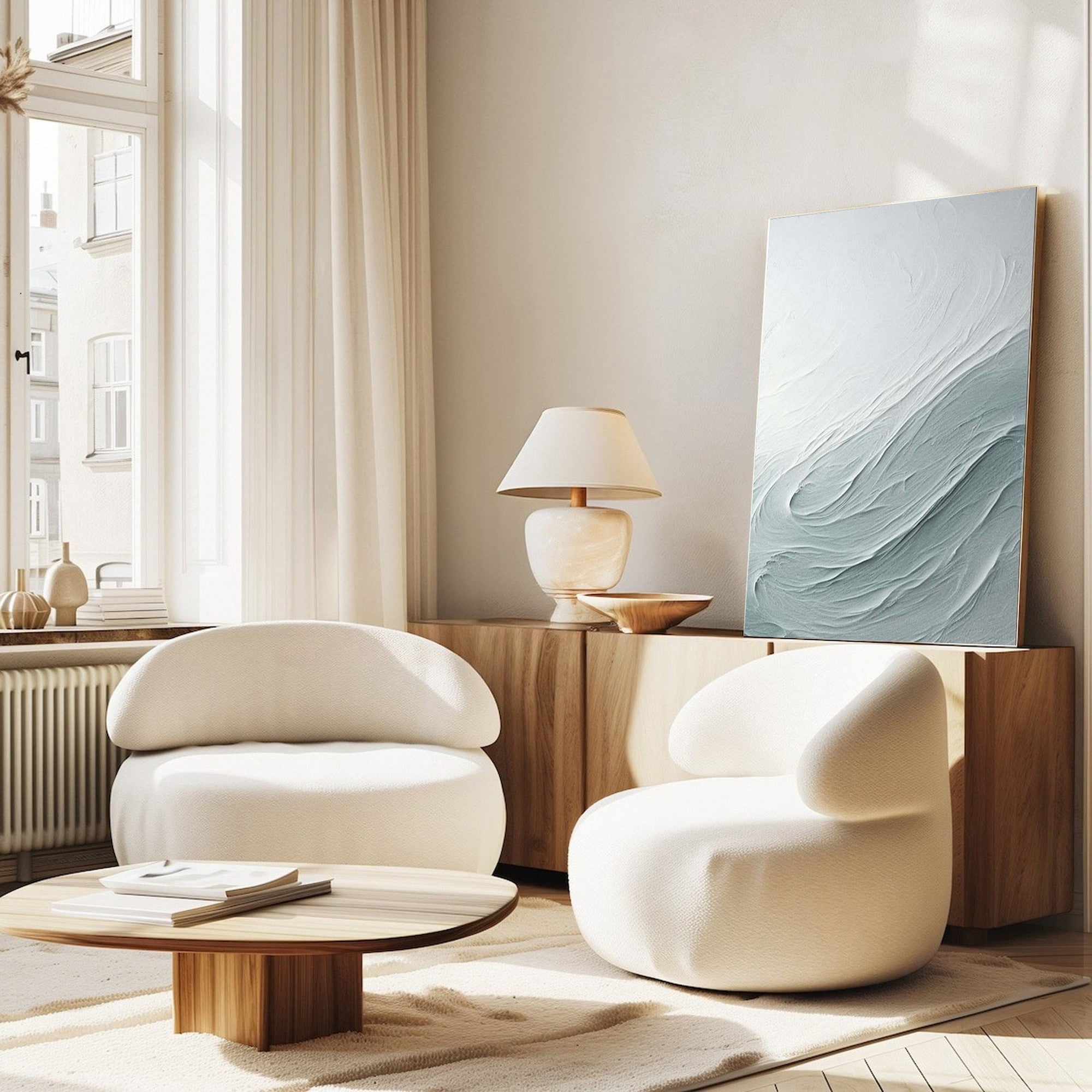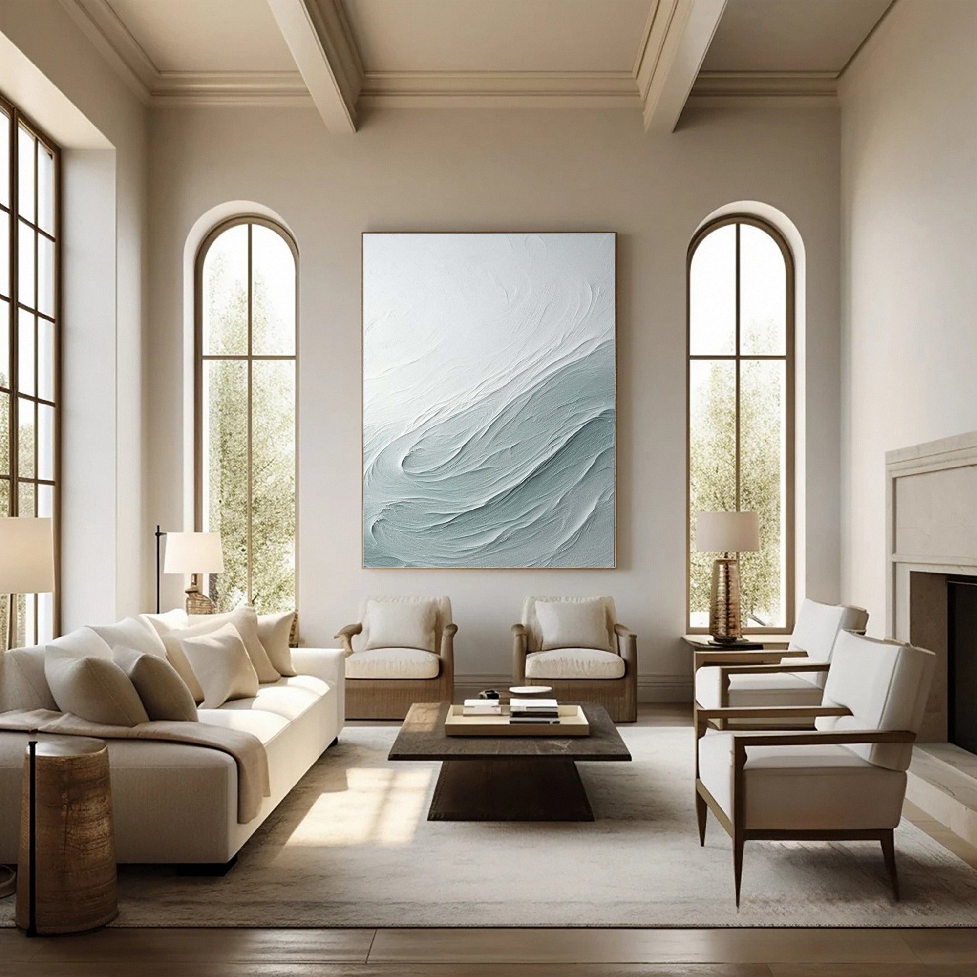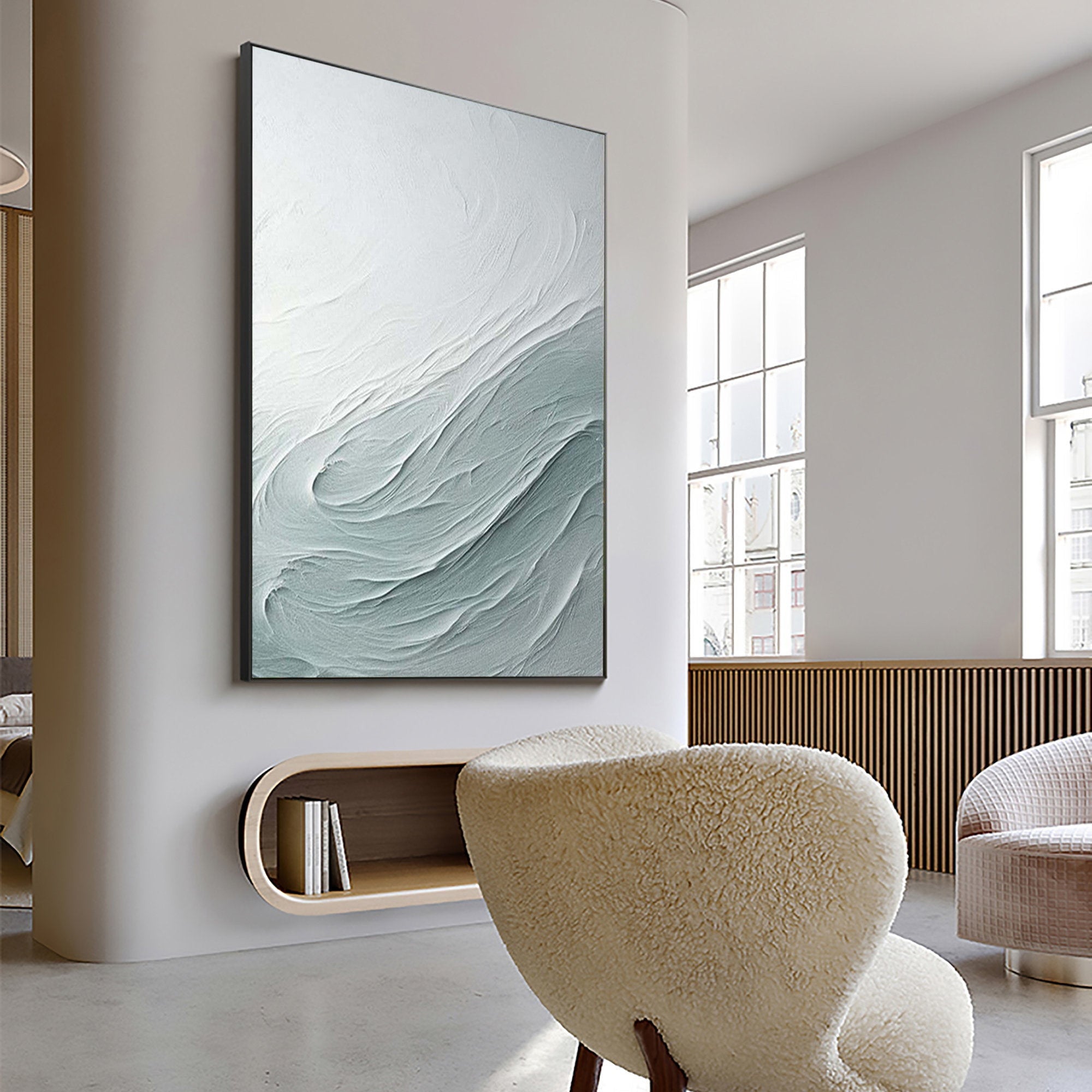 This textured abstract wave wall art captures the fluid motion of waves, bringing a sense of calm and serenity to your modern dining room decor or living room wall art. The delicate layering of textures combined with the soothing gradient tones creates a harmonious blend of artistry and nature. Perfect for those who appreciate abstract wall decor with a contemporary touch, this piece enhances the aesthetic of any interior.