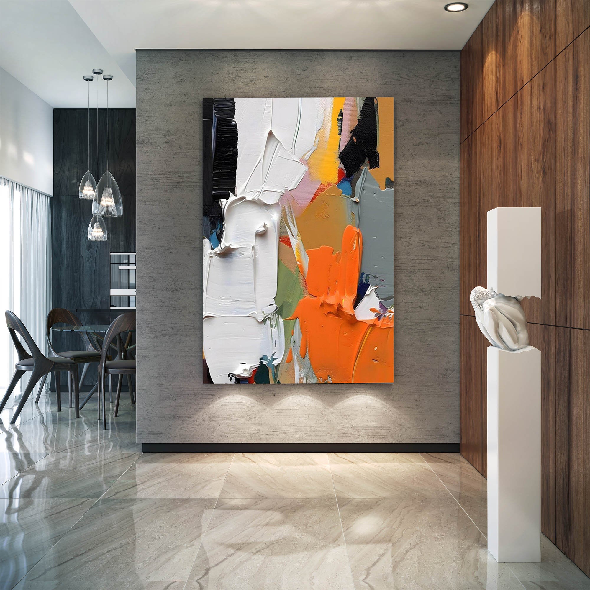 This colorful textured abstract wall art brings vibrancy and character to any modern home decor. Featuring a stunning blend of rich hues and intricate texture, it is perfect for both living room and dining area wall decor. The abstract expressionist style brings a contemporary touch to your space, making it ideal for those who appreciate unique, high-quality artwork. Its textured surface adds depth and dimension, creating an eye-catching piece that complements any interior style, from minimalist to mid-century modern.