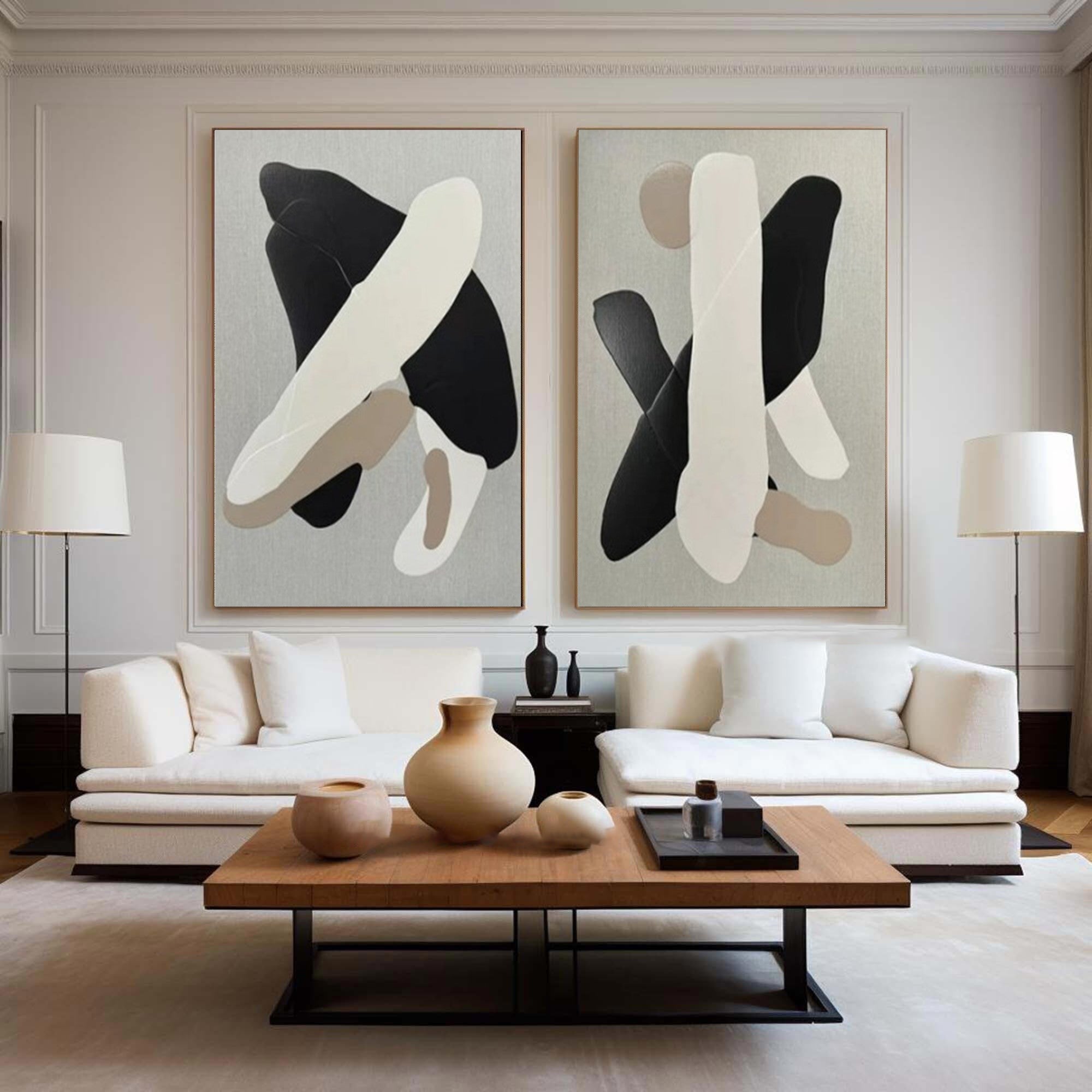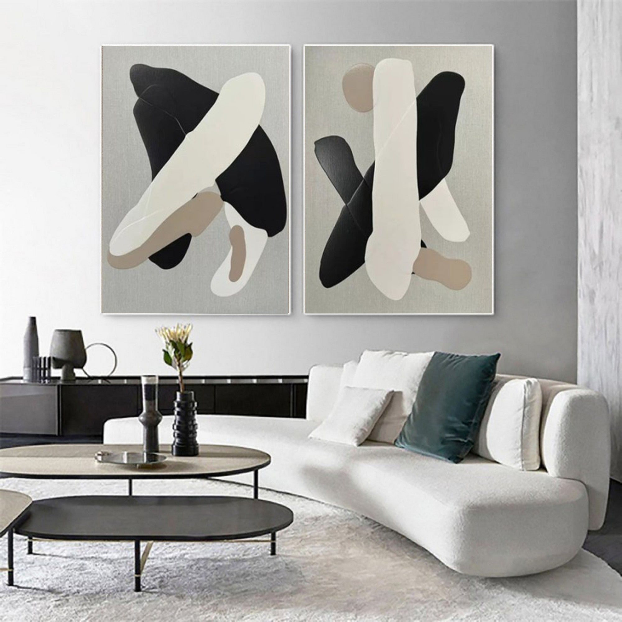 This minimalist artwork set combines clean lines and neutral tones, perfect for elevating your modern wall decor. Featuring a striking yet understated design, these pieces make an ideal choice for wall art for bedroom or living room wall art, blending effortlessly with both contemporary and minimalist aesthetics. The complementary pair offers visual balance and harmony, creating a focal point in any space.