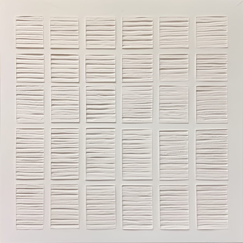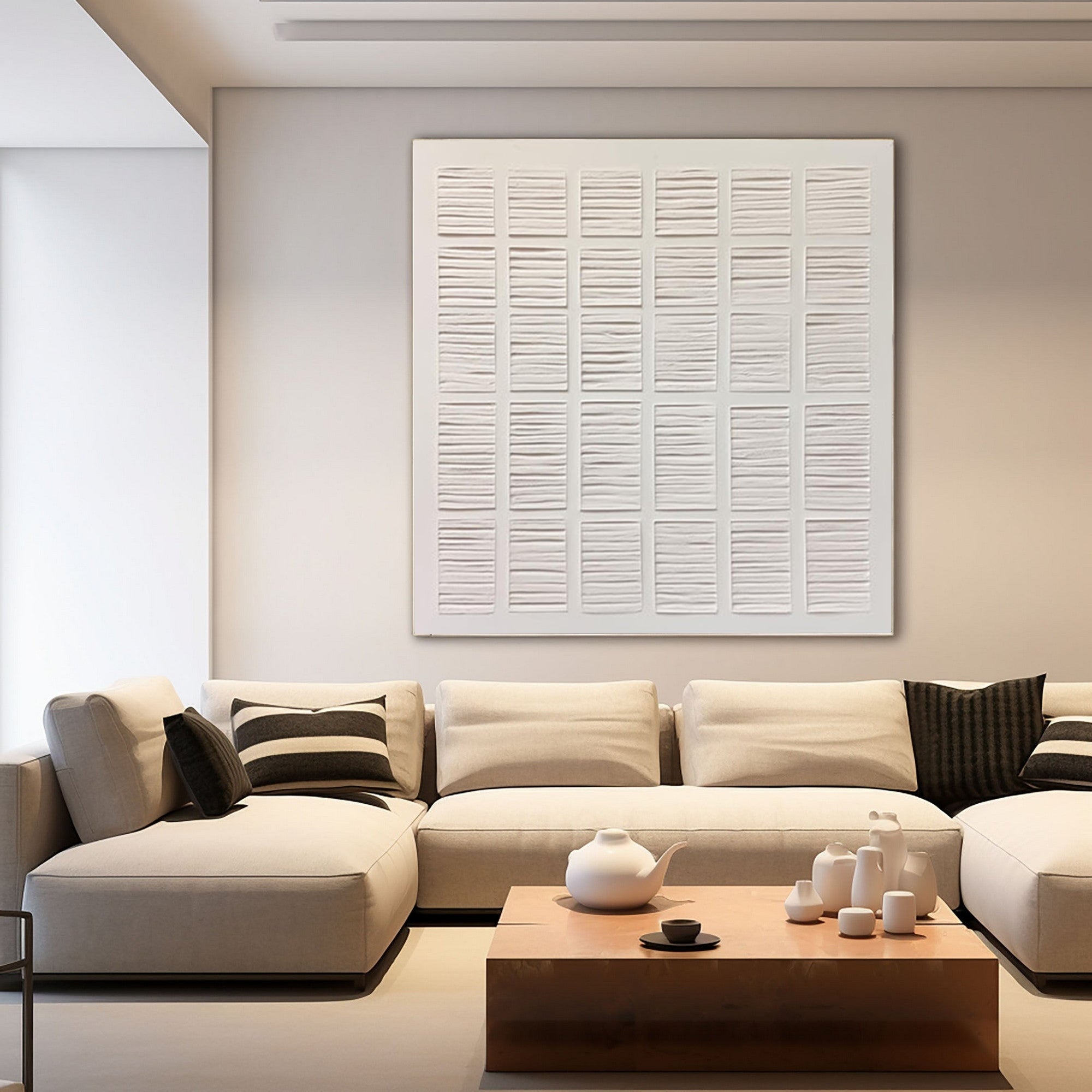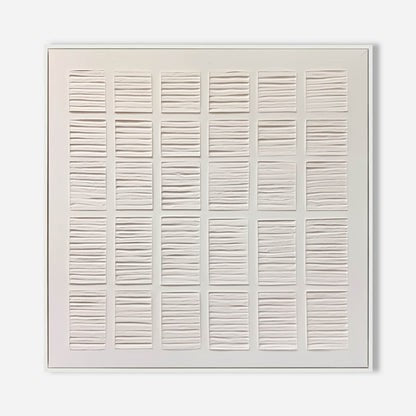 This textured abstract plaster wall art features a striking grid pattern, creating a modern and minimalistic appeal. The intricate textures and clean geometric design make it an ideal centerpiece for contemporary dining room decor or living room wall art. Perfect for those who value sophistication and balance in their interiors, this piece harmonizes effortlessly with modern wall art trends.
